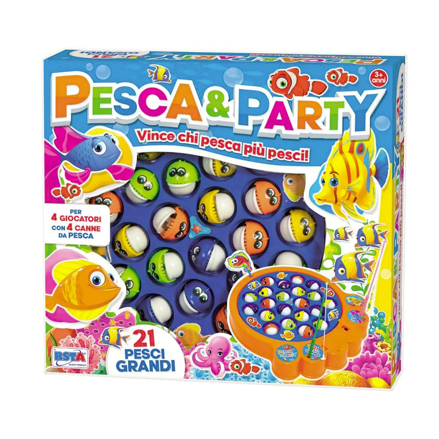 - ✅ Gioco interattivo con 21 pesci grandi e 4 canne da pesca