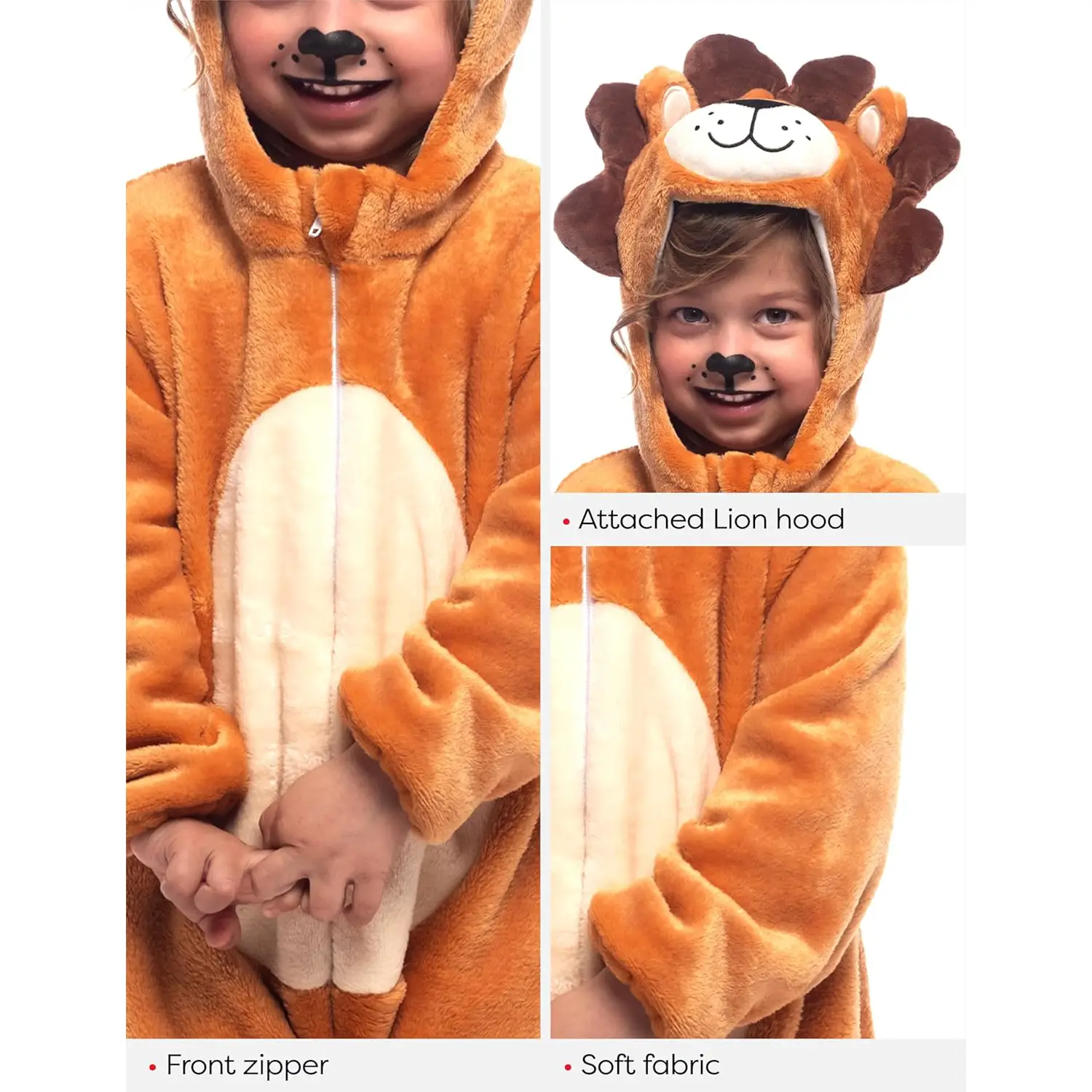 Tuta morbida e calda in stile peluche – Costume composto da una tuta con dettagli stampati che richiamano il leone. Realizzata in tessuto soffice e caldo, è ideale per le giornate più fredde e per un utilizzo confortevole.