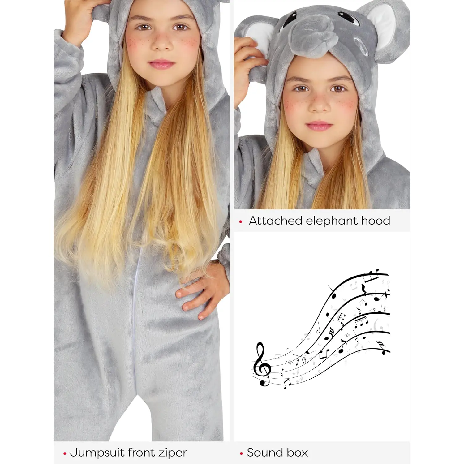 Design realistico e pratico Il travestimento include una tuta intera con cappuccio e coda, dalle orecchie grandi e simpatiche che rendono il look irresistibile. La cerniera frontale facilita la vestizione, ideale anche per i più piccoli.