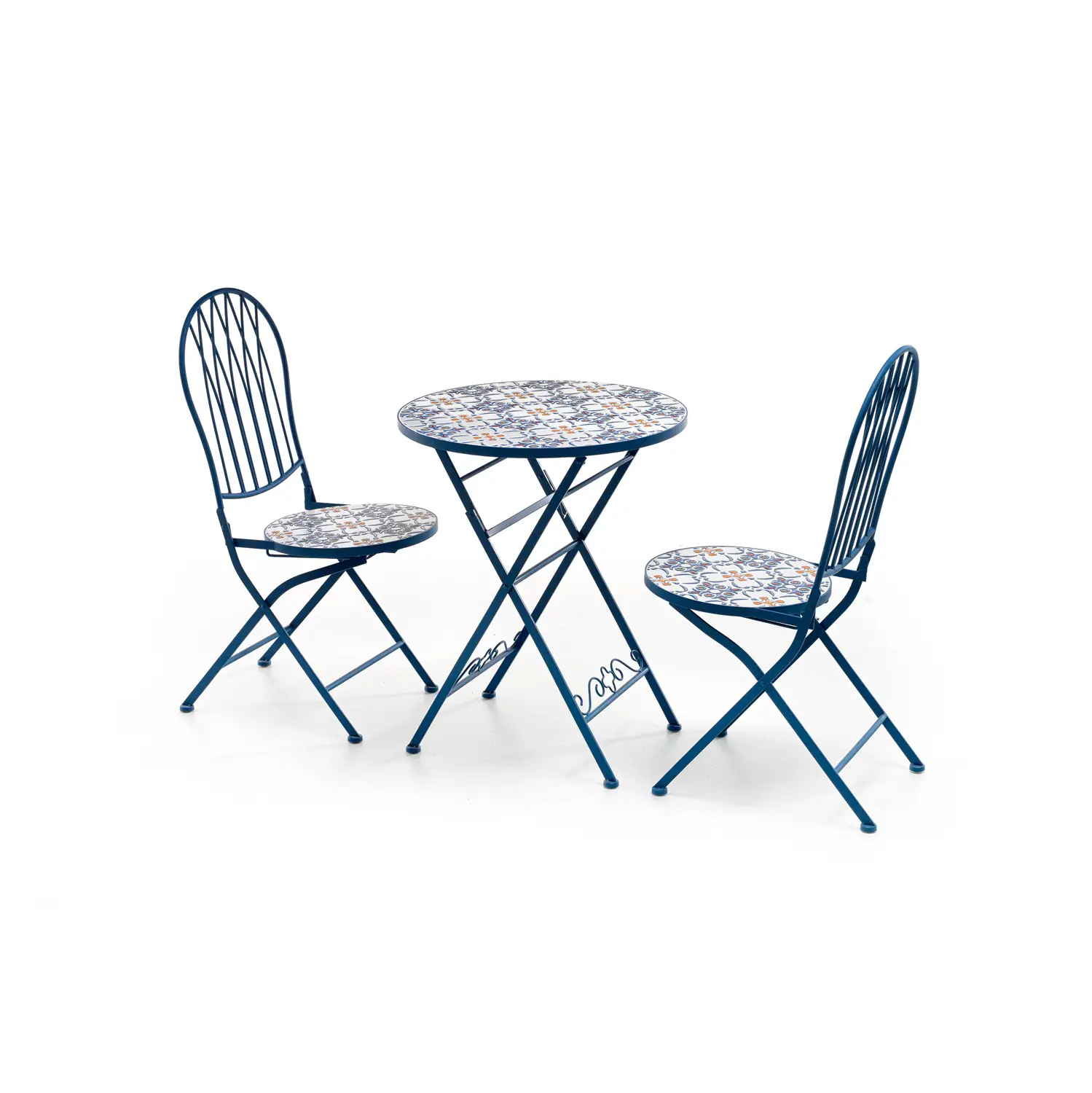 Set Capri Tavolo+2 Sedie Piegh. Diam. 60 Cm H 93 Maioliche Blu Salmar