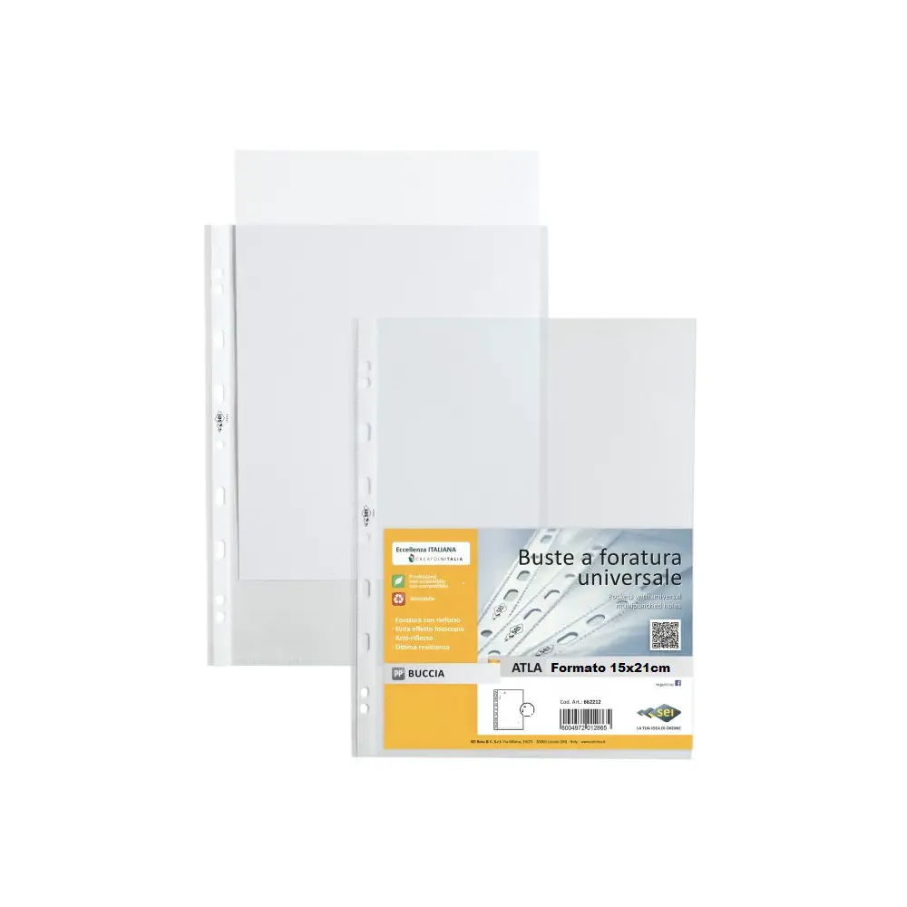 Le buste sono dotate di perforazione universale, adatte a qualsiasi raccoglitore.
