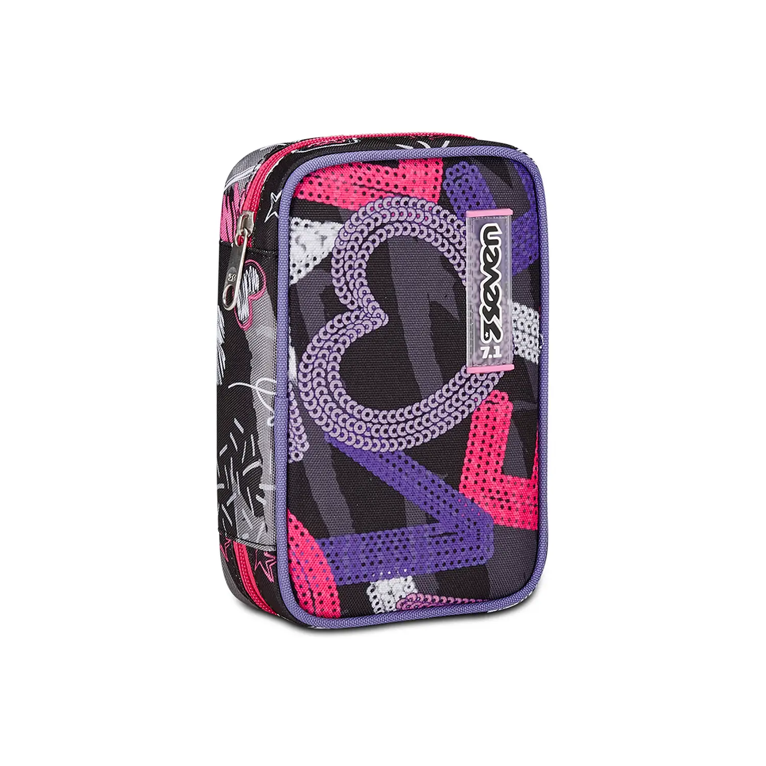 Praticità e completezza: Contiene tutto il necessario per la scuola, inclusi pastelli, pennarelli, penne e accessori vari. Le dimensioni compatte lo rendono perfetto da abbinare a uno zaino o a un trolley Seven.