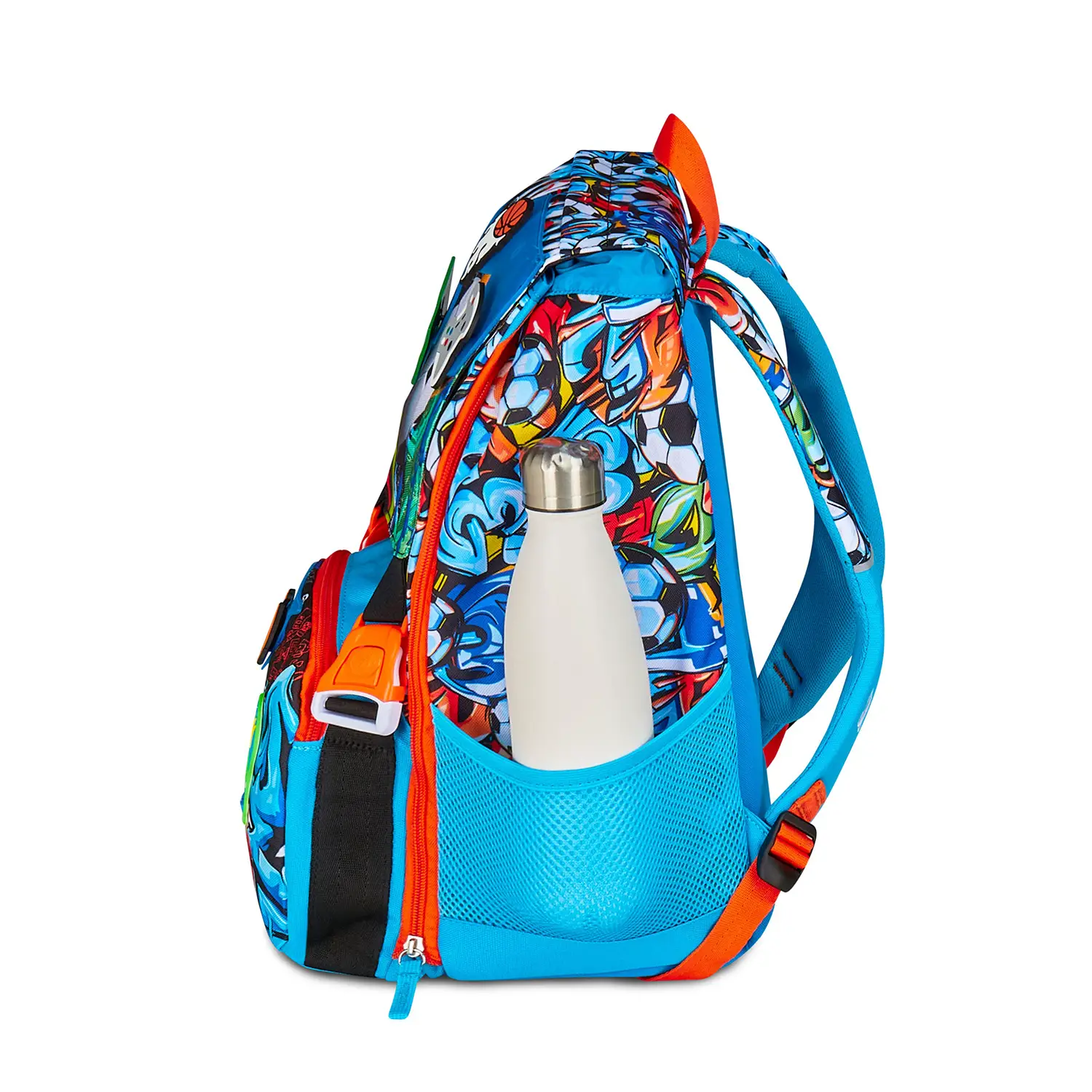 Massima Funzionalità e Sicurezza Dotato di inserti rifrangenti, tasca laterale porta borraccia e struttura rinforzata, è pensato per affrontare ogni giornata di scuola in sicurezza.
