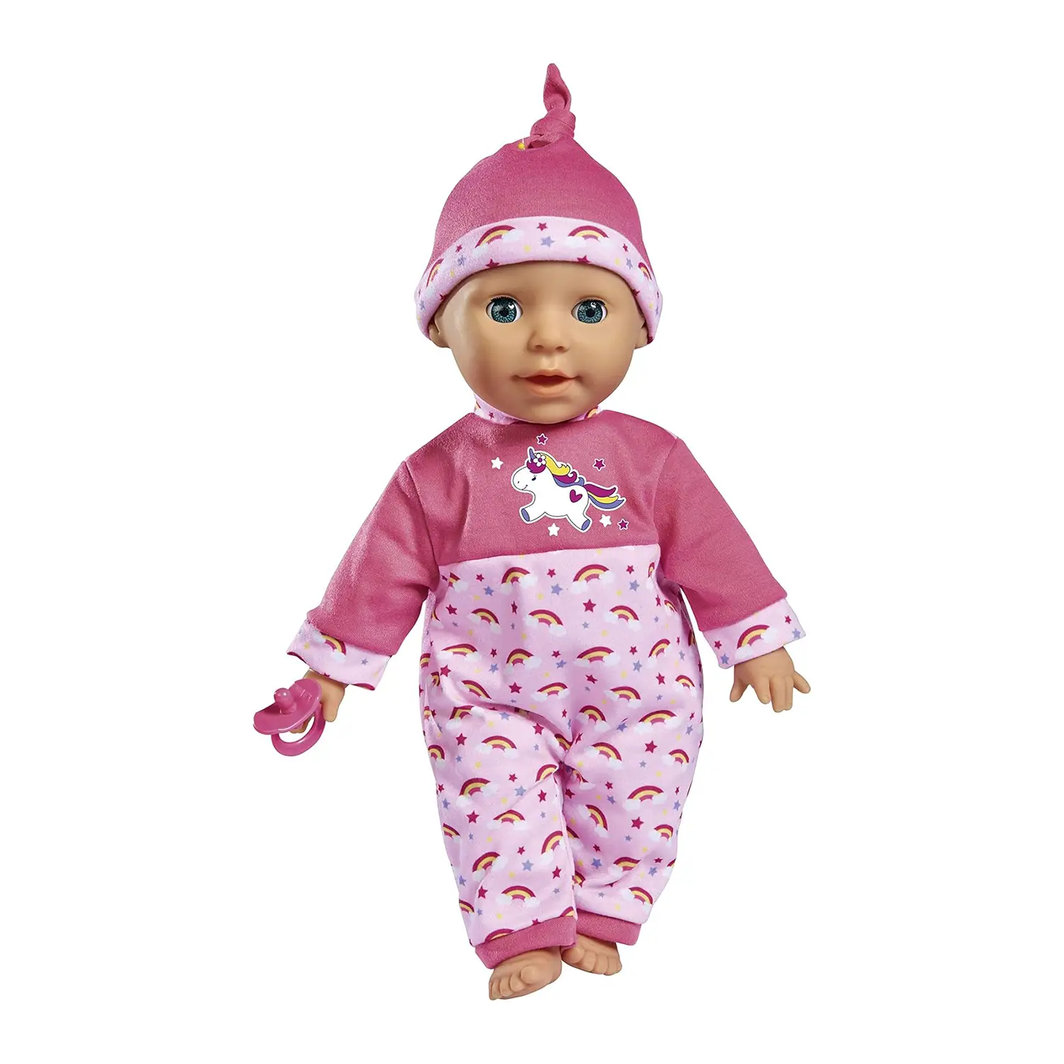 - ✅ Bambola parlante Baby Laura 38 cm con pigiama unicorno e arcobaleni, perfetta come compagna di giochi dai 2 anni in su.