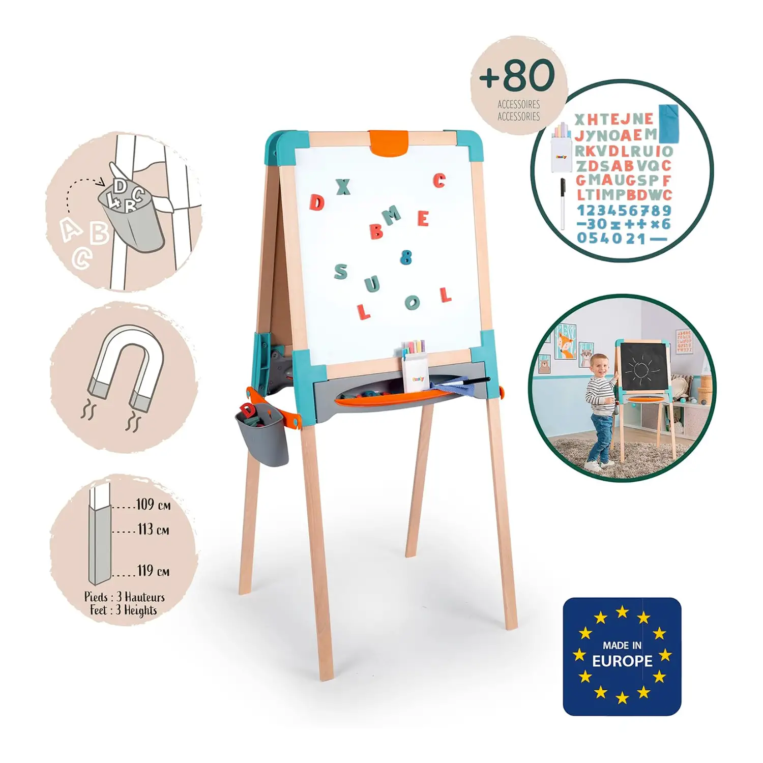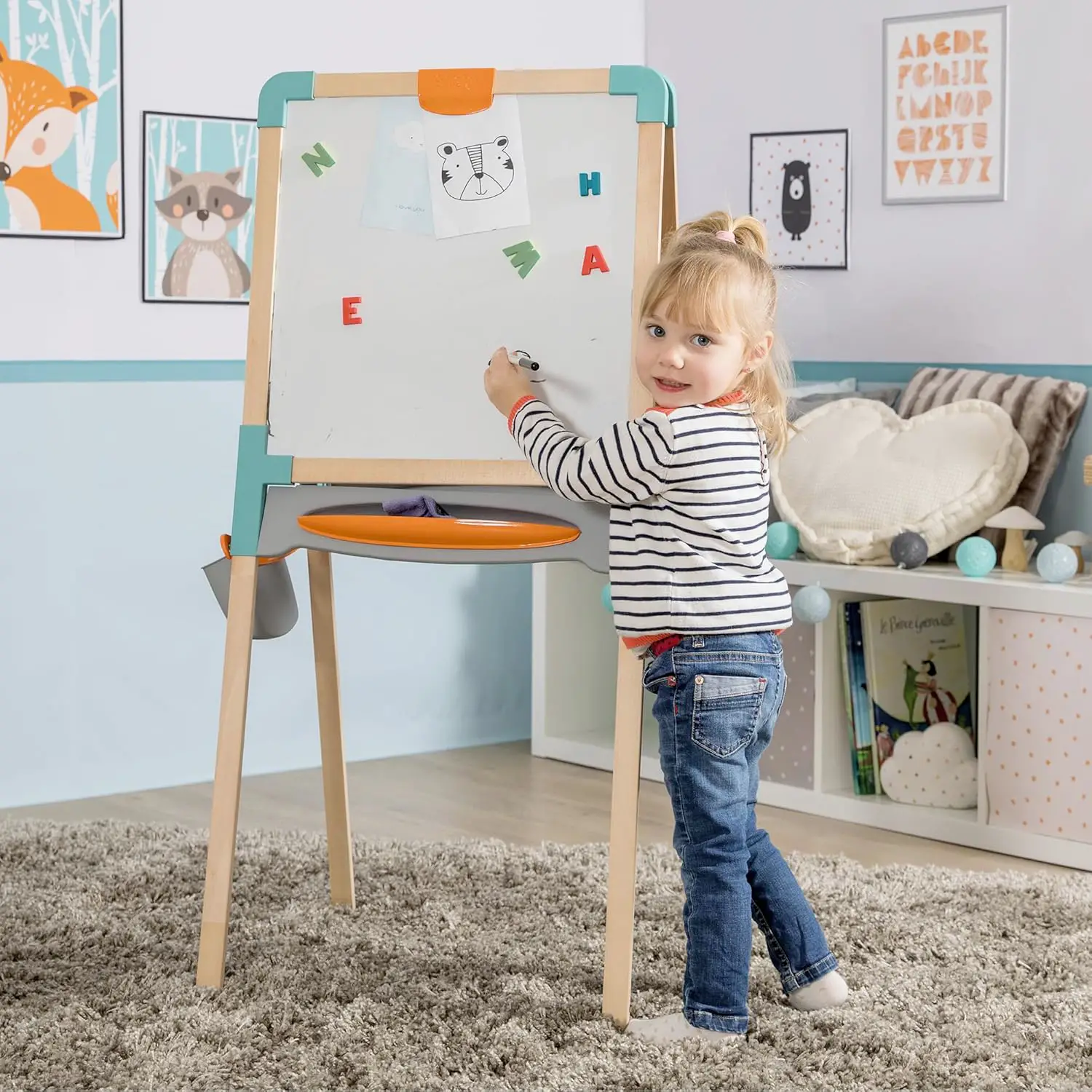 Doppia superficie per scrivere e disegnare - La lavagna in legno offre un lato nero per i gessetti e un lato bianco magnetico per pennarelli cancellabili.