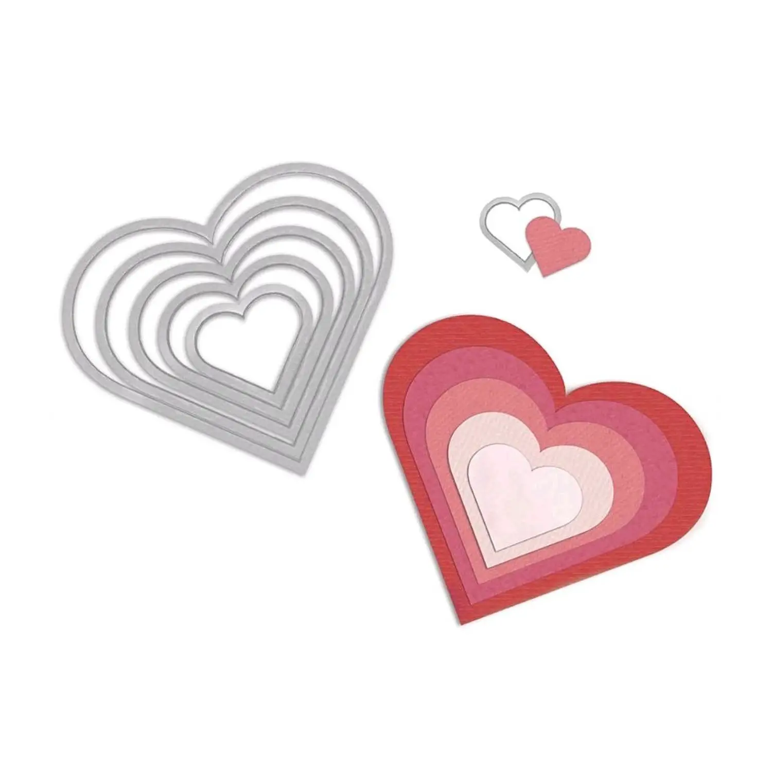 - Set di 6 Fustelle a Forma di Cuore: Dimensioni variabili da 11,4 x 11,4 cm a 2,2 x 2,2 cm, ideali per personalizzare ogni progetto.