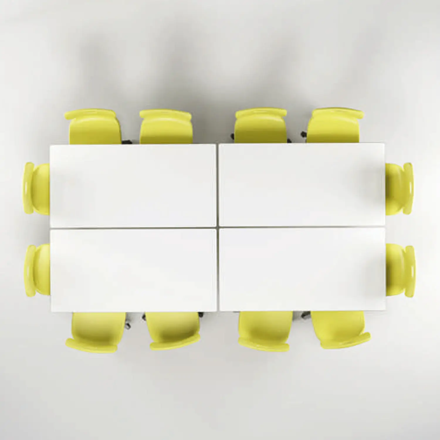 La forma rettangolare ampia e versatile lo rende perfetto per spazi piccoli e grandi, consentendo di creare postazioni di lavoro, studio e gruppi di formazione in modo pratico e funzionale.