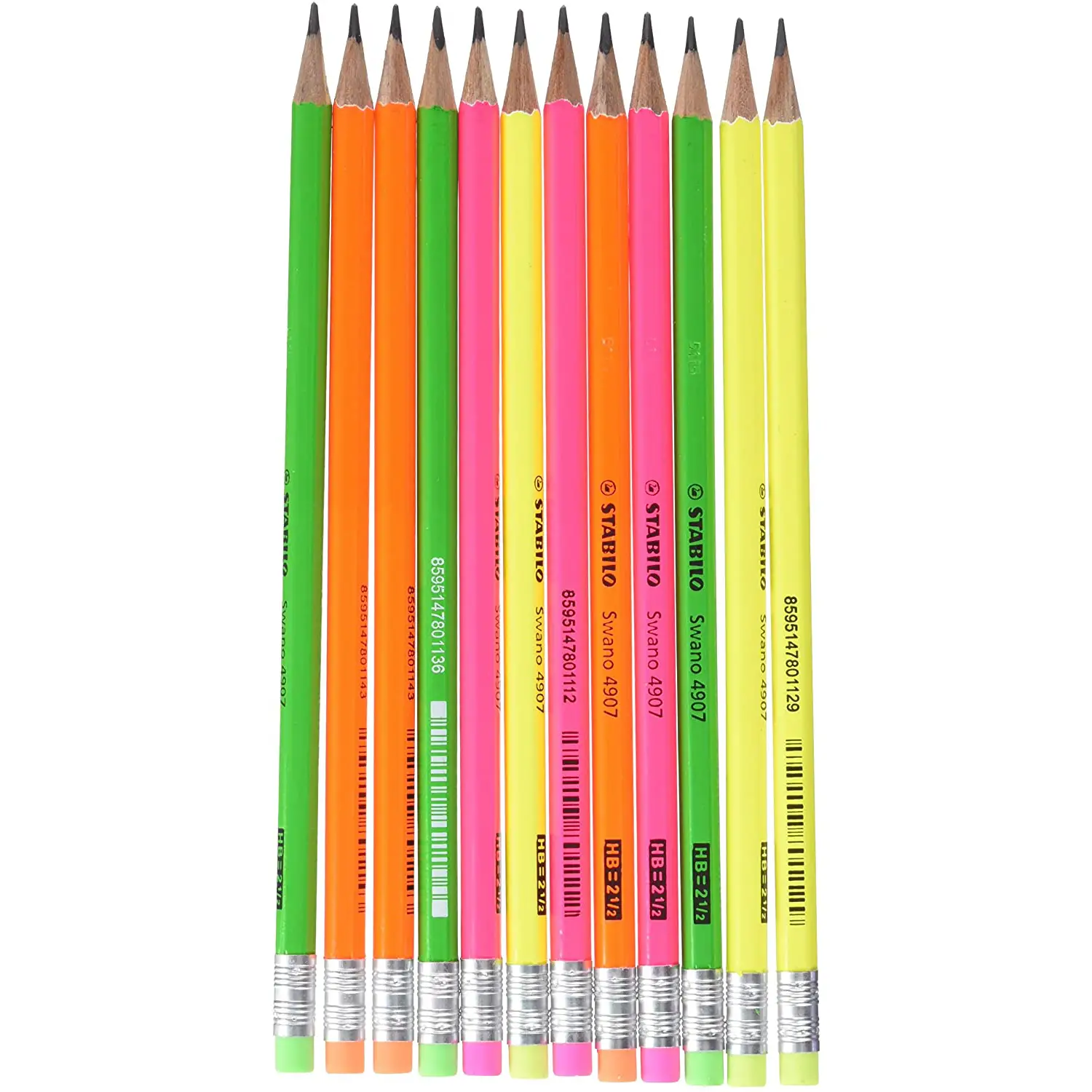 Matite STABILO Swano Fluo HB – Set da 12 Pezzi con Gommino Integrato