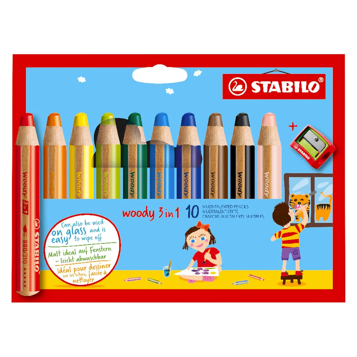 Pastelloni Colorati Woody Stabilo 10 Pezzi + Temperino