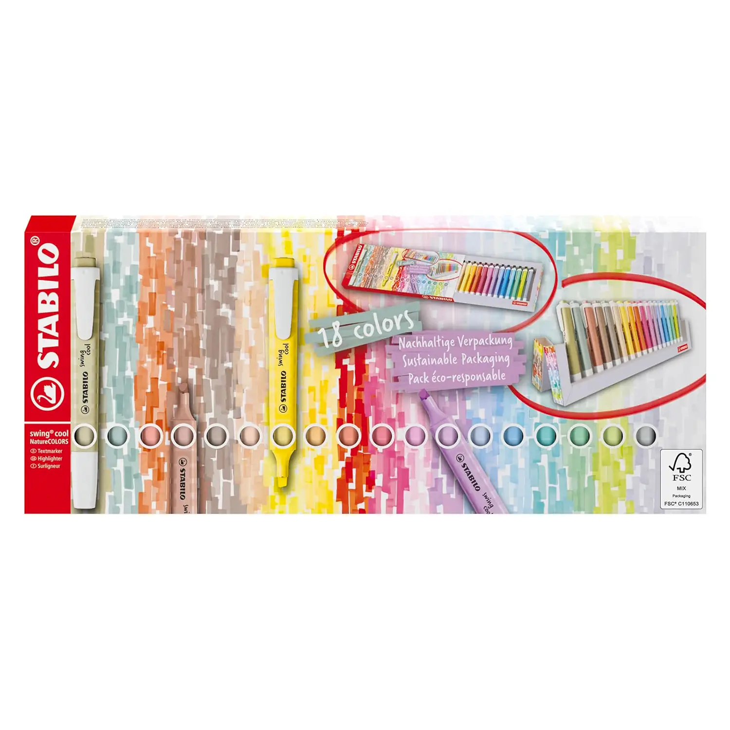 Swing Cool Evidenziatori Stabilo Set Da Scrivania 18 Colori Nature + Pastello