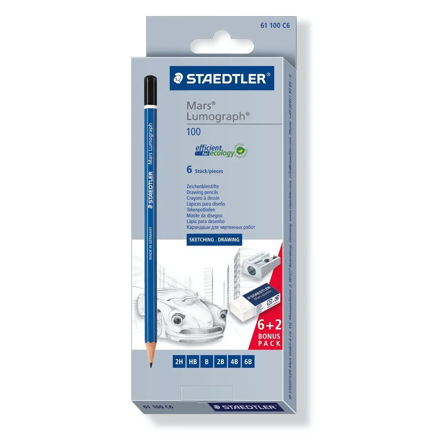 Con il Set STAEDTLER Mars Lumograph con gomma e temperamatite, avrai tutti gli strumenti essenziali per disegnare e scrivere con precisione e comodità.