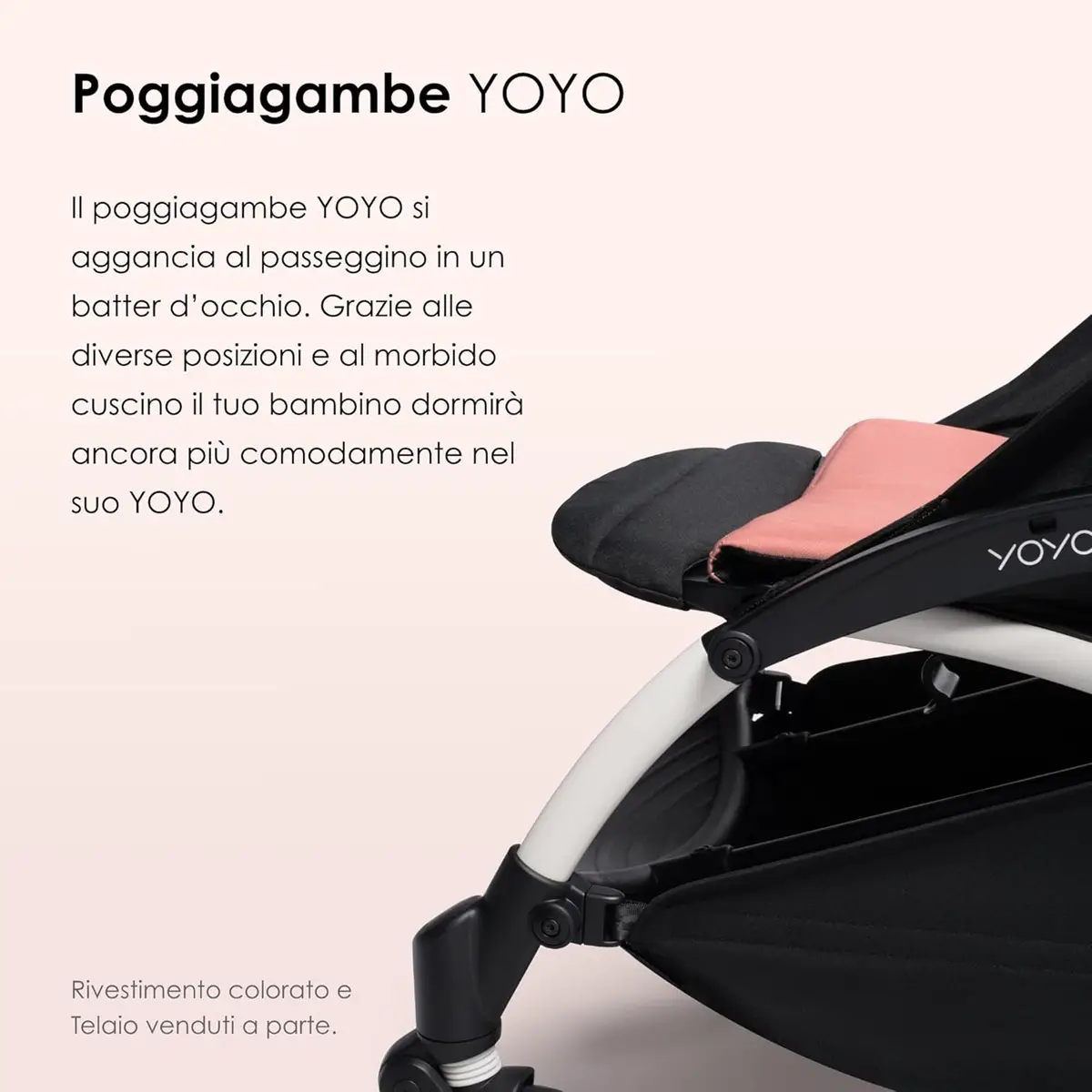 Installazione semplice e veloce Il sistema di fissaggio intuitivo consente di agganciare il poggiagambe al telaio YOYO in pochi secondi, senza bisogno di attrezzi. Questa facilità d’uso lo rende un accessorio perfetto per genitori dinamici che desiderano praticità e rapidità nei movimenti quotidiani.