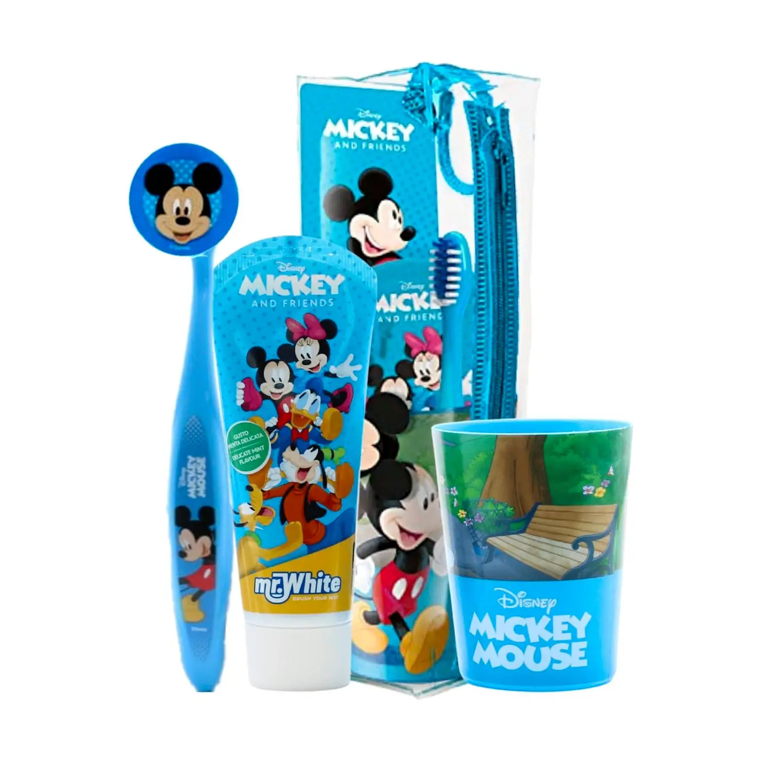 - ✅ Set igiene orale Mickey Mouse con pochette trasparente e zip, perfetto per bambini dai 3 anni in su.
