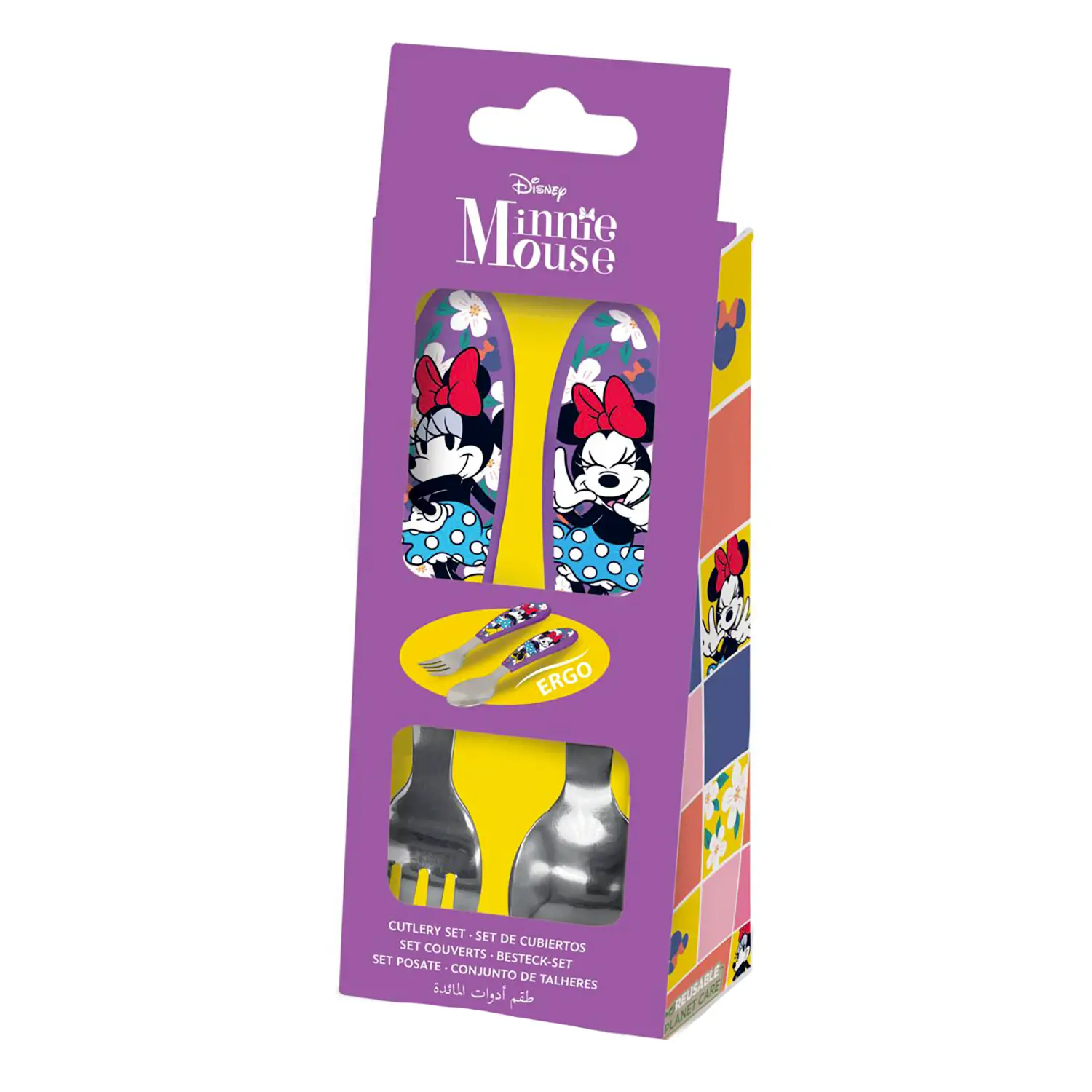 Set posate Minnie per bambini Il set composto da cucchiaio e forchetta dedicato a Minnie Mouse rende il momento del pasto più divertente e coinvolgente per i più piccoli.