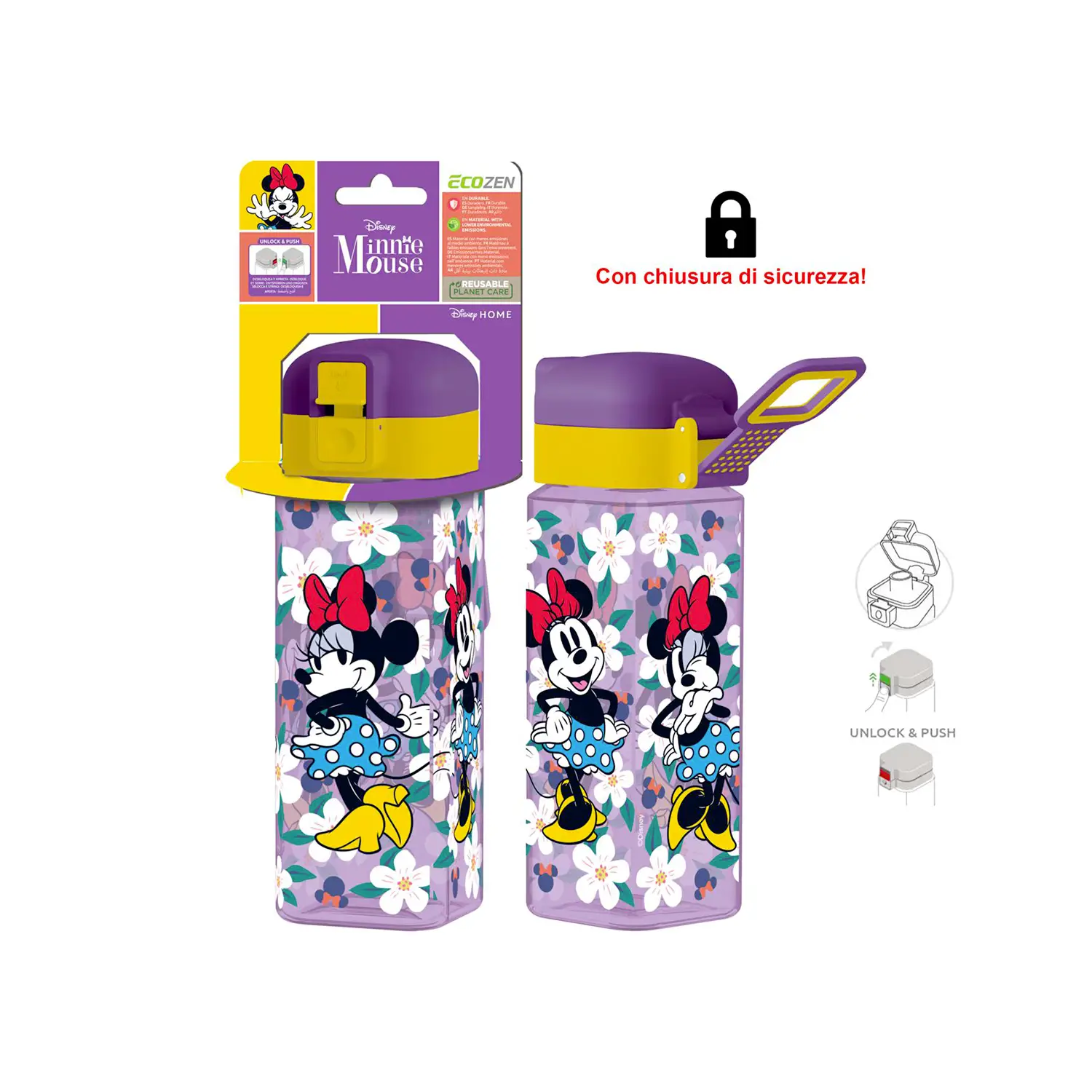 - ✅ Borraccia Minnie 550 ml con Safety Lock
