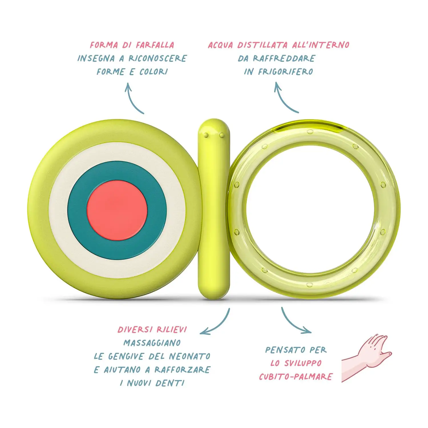 Progettato per piccole mani e sviluppo motorio La forma a farfalla stimola il riconoscimento visivo, mentre il design ergonomico si adatta perfettamente alla presa ulna-palmare del neonato. Aiuta a sviluppare coordinazione e capacità motorie in modo naturale.