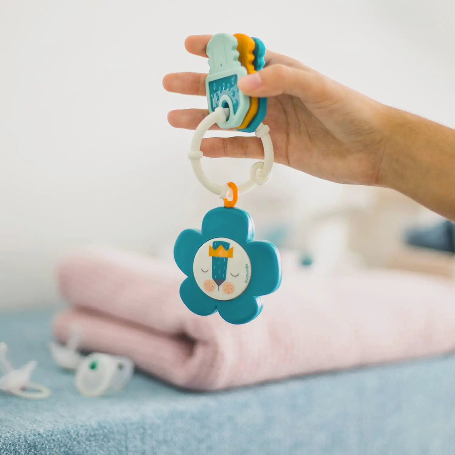 Formato portachiavi per le prime esplorazioni Il design a portachiavi è maneggevole e stimolante. Progettato per la prima fase della dentizione, è comodo da afferrare e perfetto per l’interazione autonoma del bambino nei suoi primi mesi.