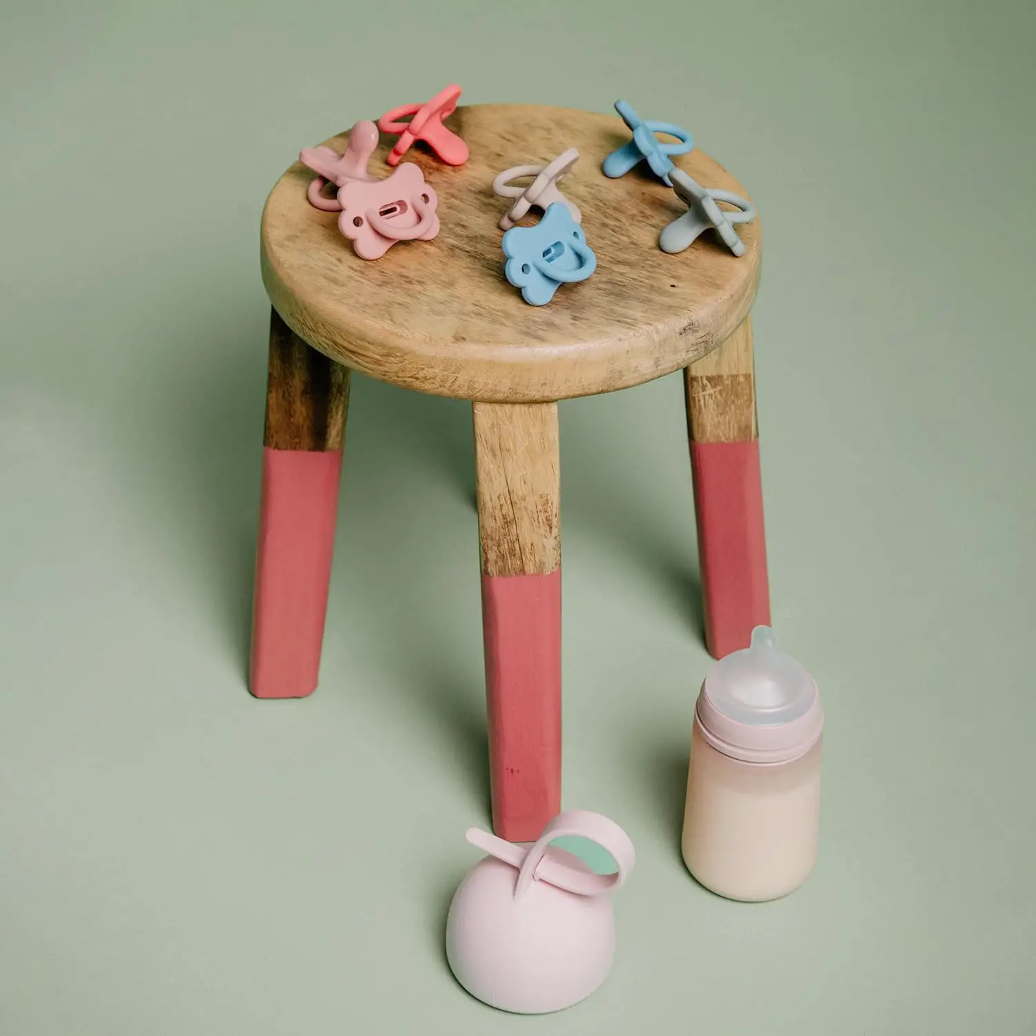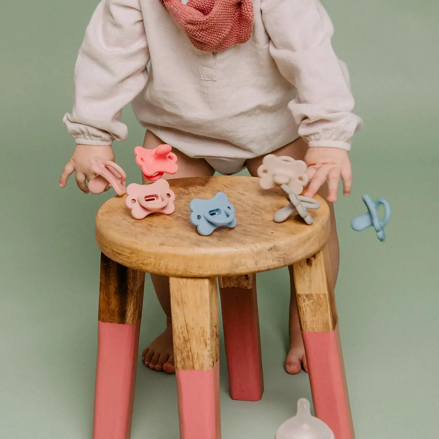 Design simmetrico, piatto e reversibile Il ciuccio si adatta perfettamente in ogni posizione grazie alla forma piatta e simmetrica. Permette alla bocca di chiudersi quasi completamente e lascia alla lingua spazio per muoversi liberamente durante la suzione.