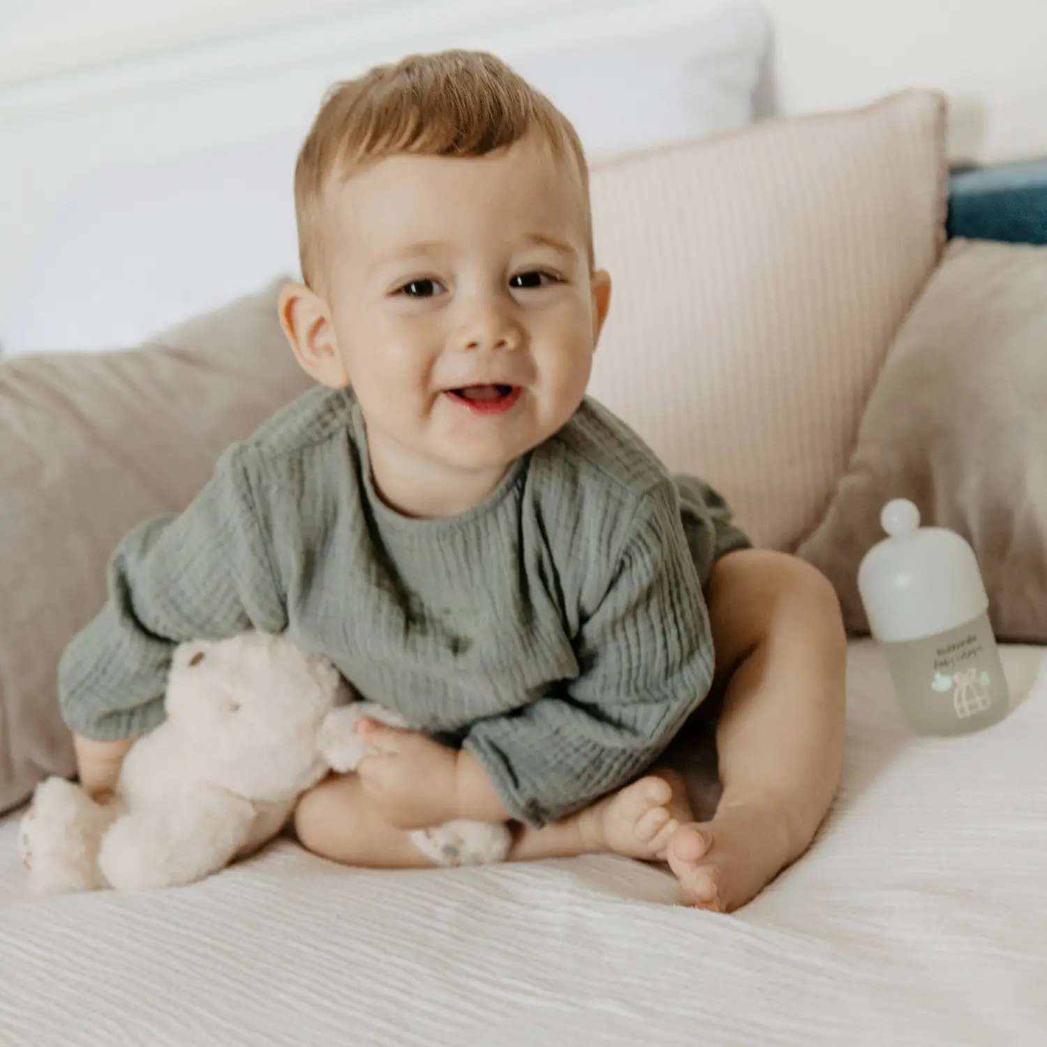 Freschezza Delicata per i Più Piccoli Formulato con basso contenuto alcolico, My First Baby Cologne coccola la pelle con un profumo leggero. Note agrumate e fiori bianchi si uniscono armoniosamente per un’esperienza olfattiva pura e rassicurante.