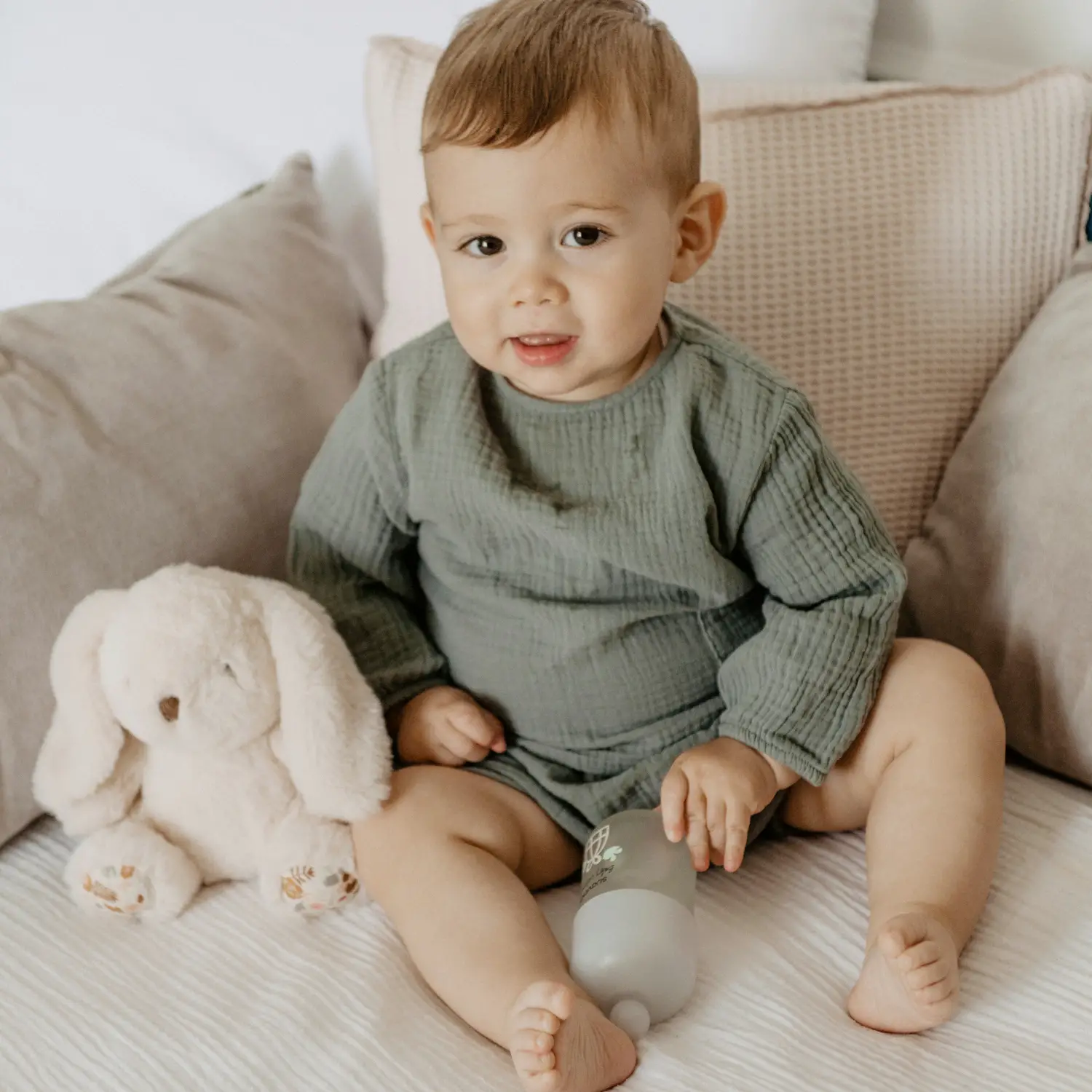 Set Completo e Pratico La confezione include una bottiglia da 100 ml per l’uso quotidiano e una da 50 ml, perfetta per il viaggio. In più, un morbido peluche accompagna il set, rendendolo un regalo irresistibile.