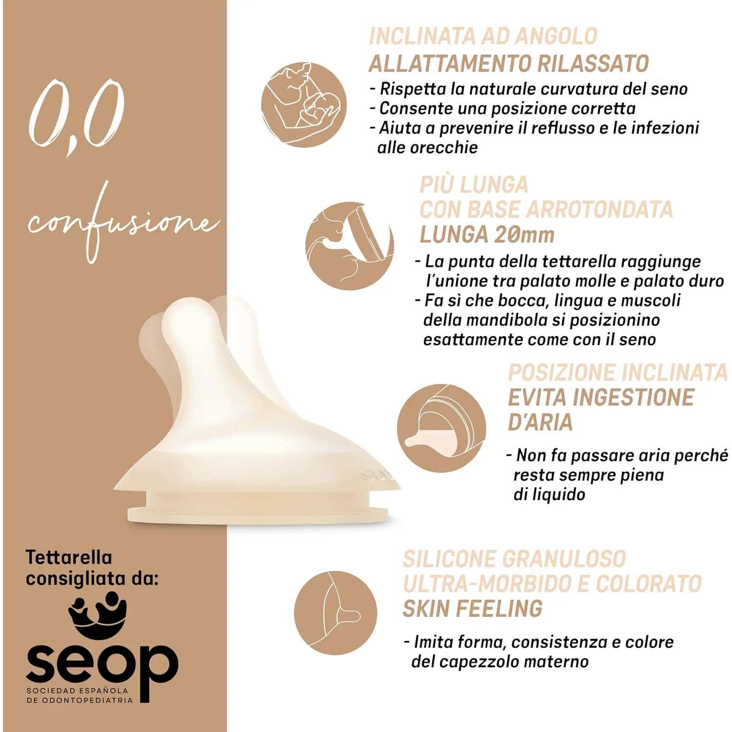 • ✅ Tettarella inclinata che previene l'ingestione di aria, aiuta a ridurre le coliche gassose.