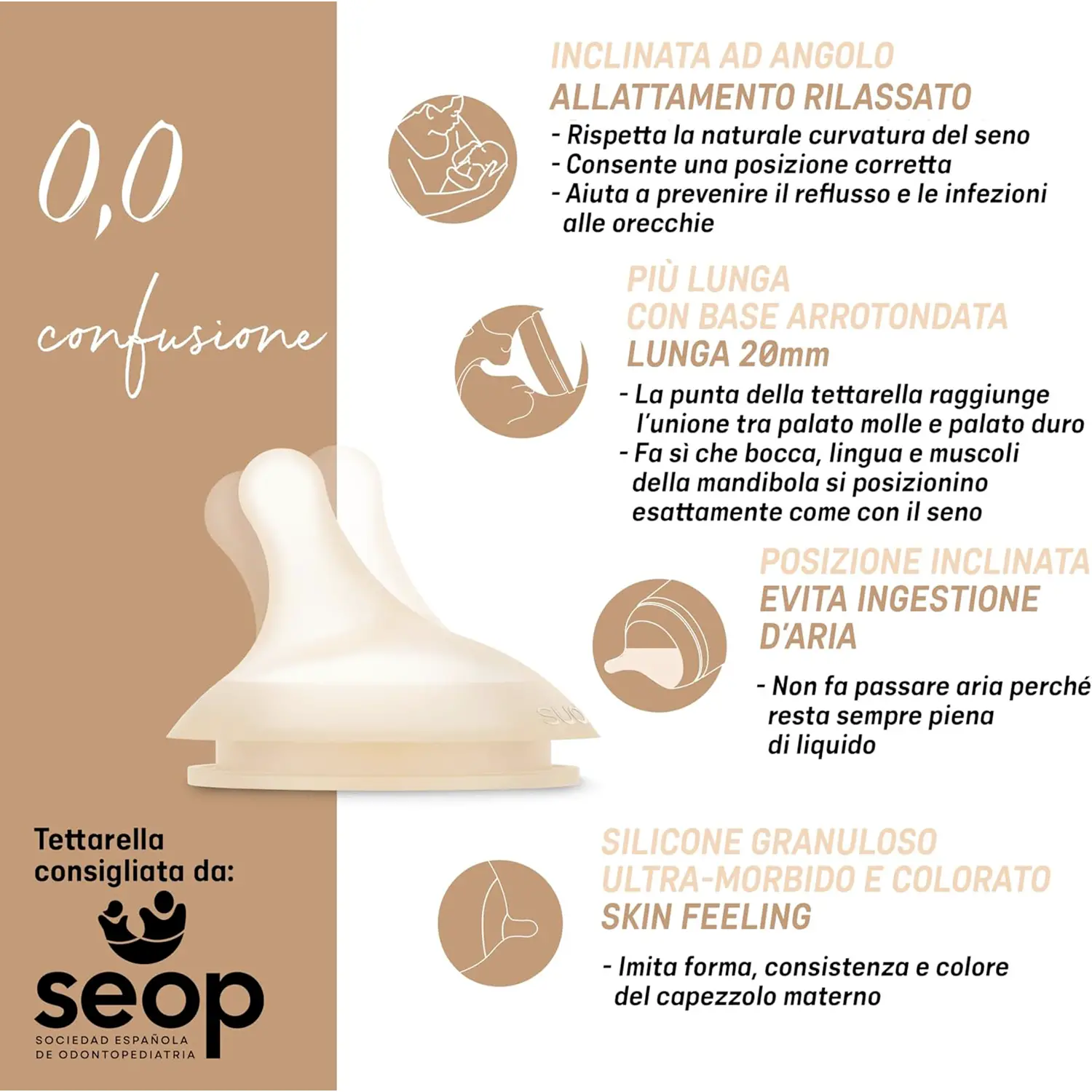 Ideali per l’Allattamento Misto e Naturale Il design simula il seno materno in forma, lunghezza e consistenza, agevolando il passaggio tra seno e biberon. Perfette per neonati alimentati al seno o in allattamento misto, senza creare confusione.