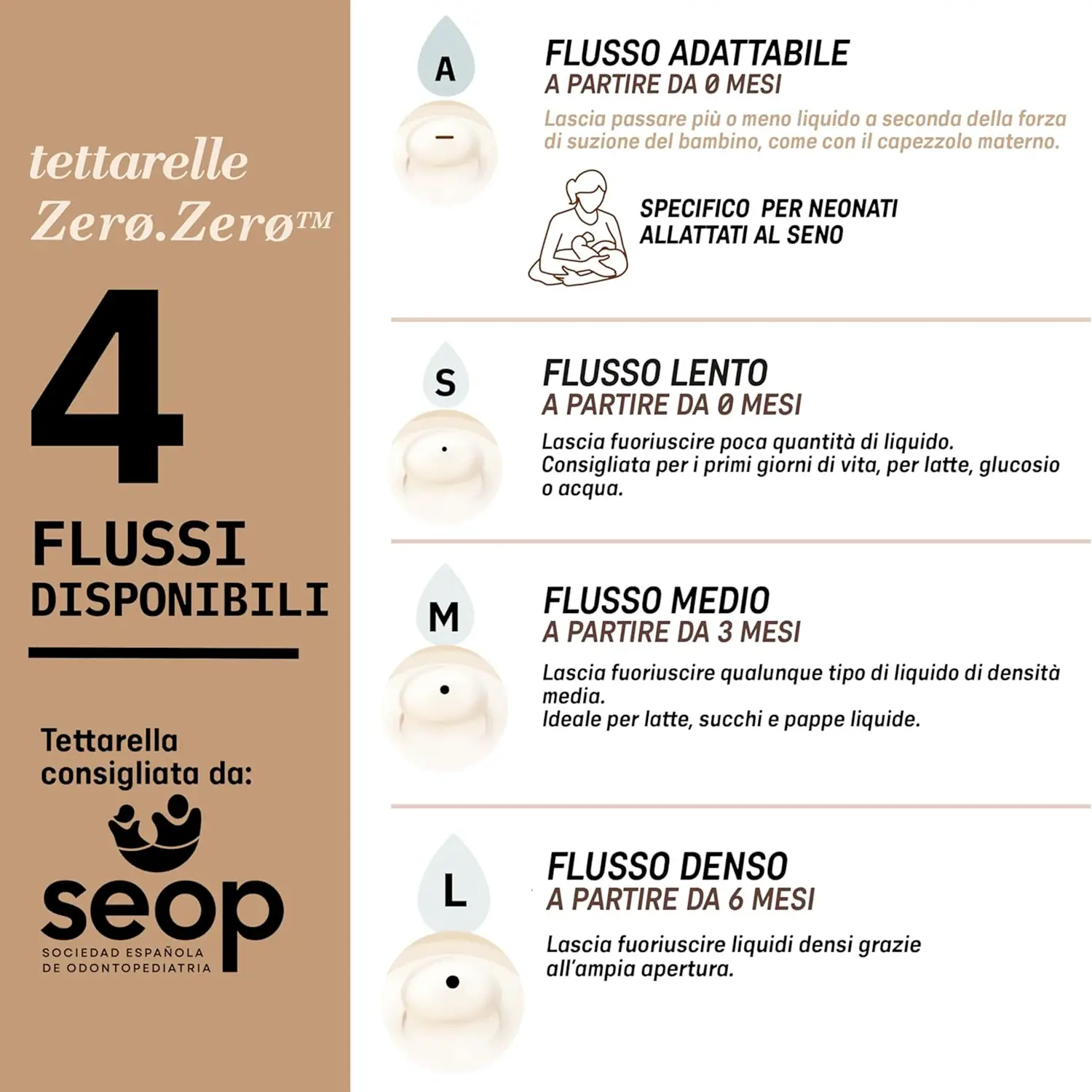Perfette dalla Nascita (+0 Mesi) Ideali fin dai primi giorni di vita, si attivano solo con la suzione, proprio come il seno. Nessun passaggio di liquido se non aspirato: sicurezza, controllo e comfort per un’esperienza di poppata serena.