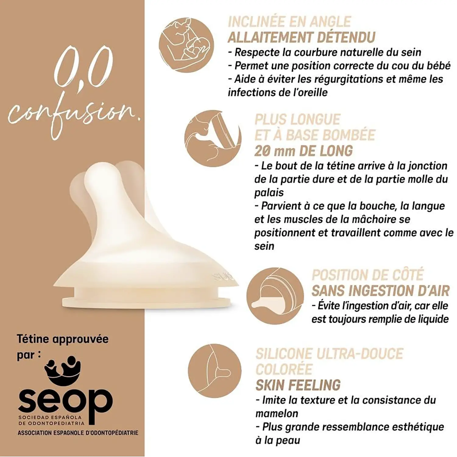 - ✅ Set composto da 2 tettarelle a flusso denso (L), ideali per bambini dai 6 mesi in su, compatibili solo con biberon Suavinex Zero Zero.