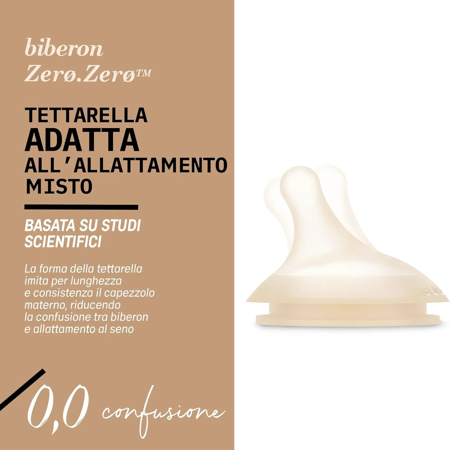 - ✅ Set da 2 tettarelle di ricambio compatibili solo con biberon Suavinex Zero Zero anticolica.
