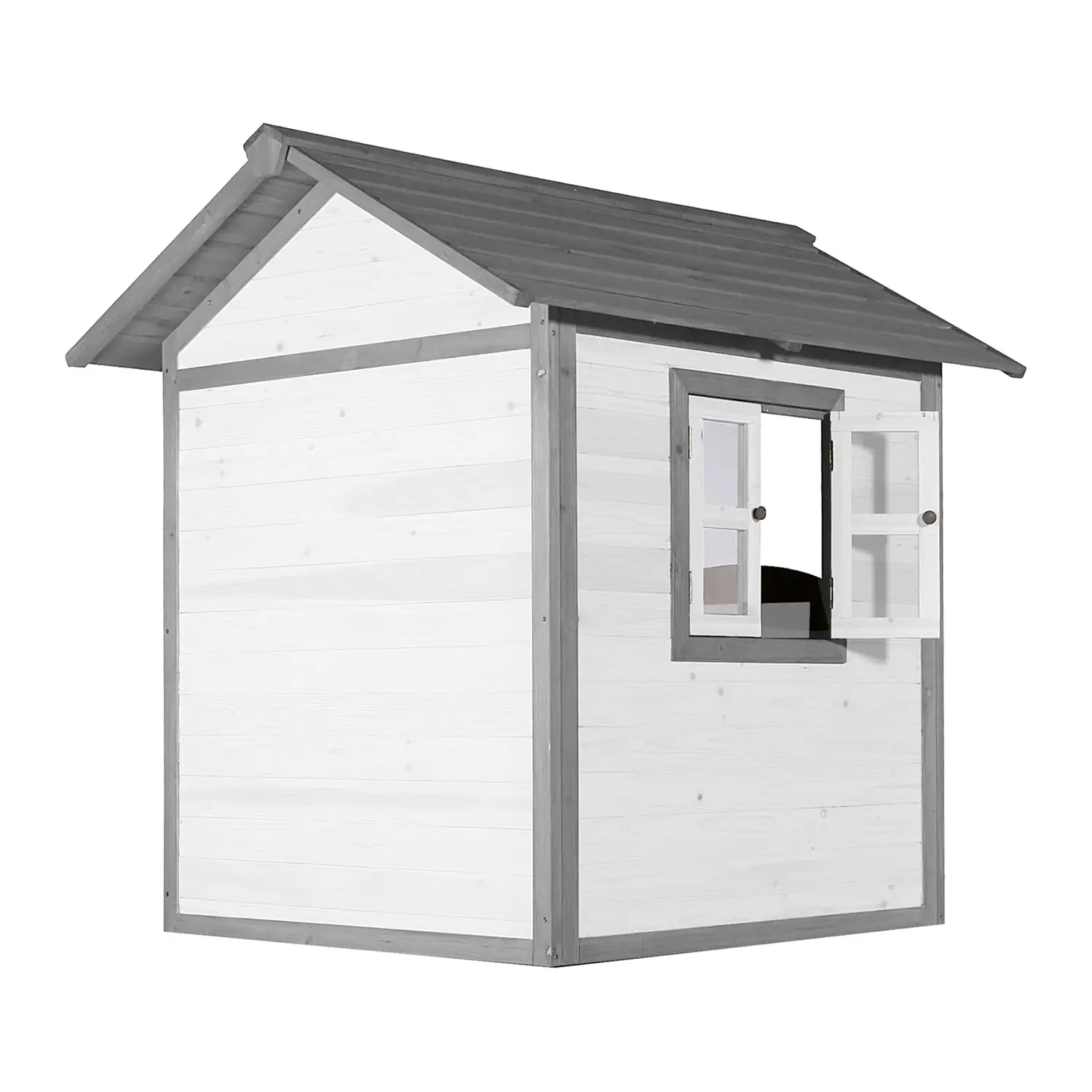 La casetta Beach Lodge combina stile grigio/bianco e funzionalità, offrendo un’area gioco sicura e accogliente per il giardino. Dotata di finestre apribili e porta frontale, stimola gioco creativo e interazione.