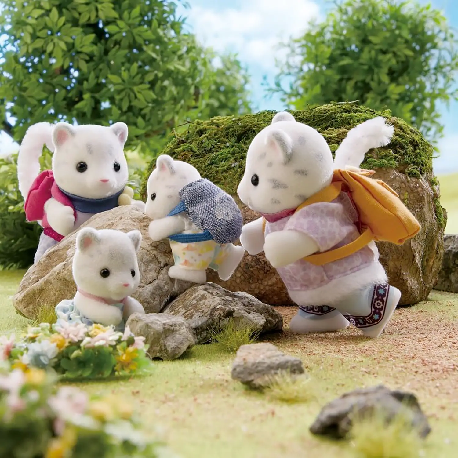 Una famiglia unica e adorabile La Famiglia Leopardo delle Nevi Sylvanian è caratterizzata da un soffice manto bianco e lunghe code. Un set esclusivo che arricchisce il villaggio con eleganza e dettagli realistici.