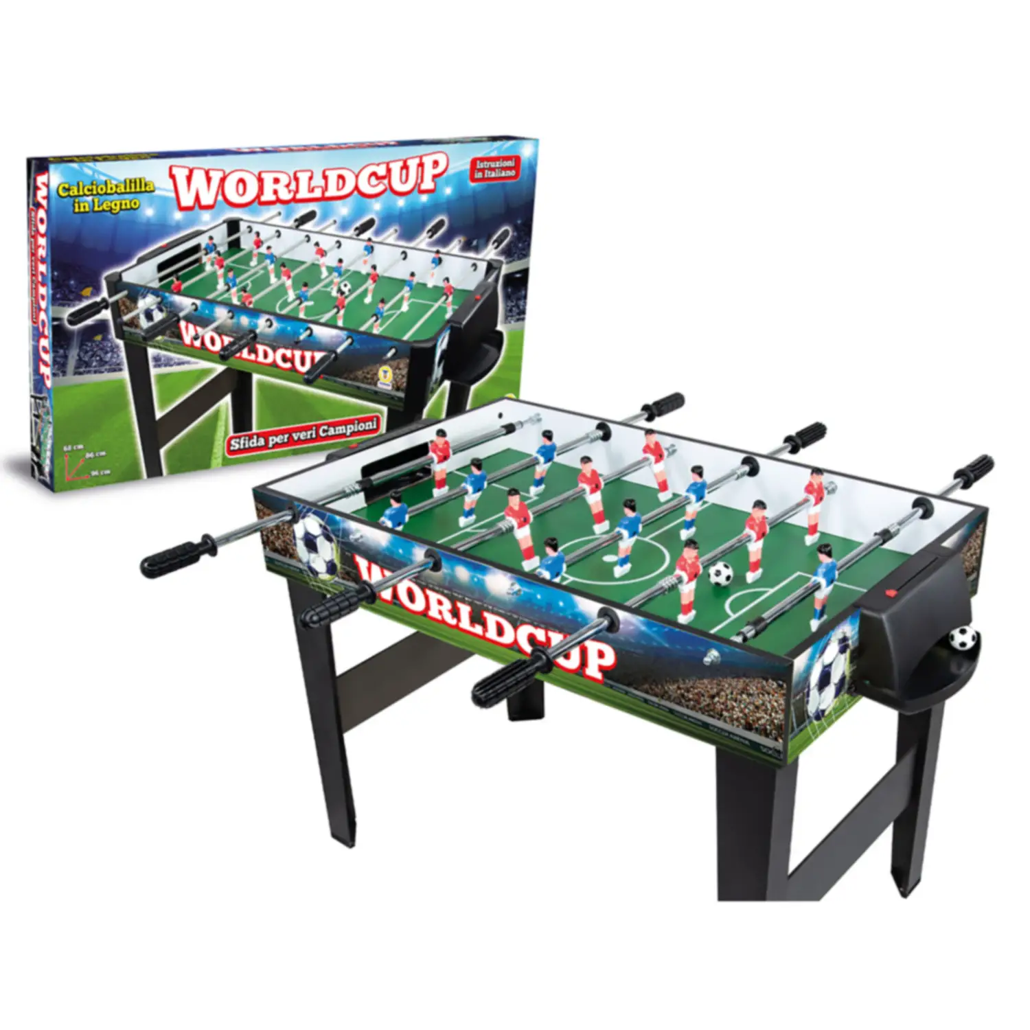 Scopri il Calciobalilla Worldcup, il tavolo da calcio balilla con aste telescopiche progettato per offrire sicurezza, robustezza e tanto divertimento in casa. Perfetto per bambini, ragazzi e adulti, questo biliardino è ideale per partite in famiglia o tra amici.