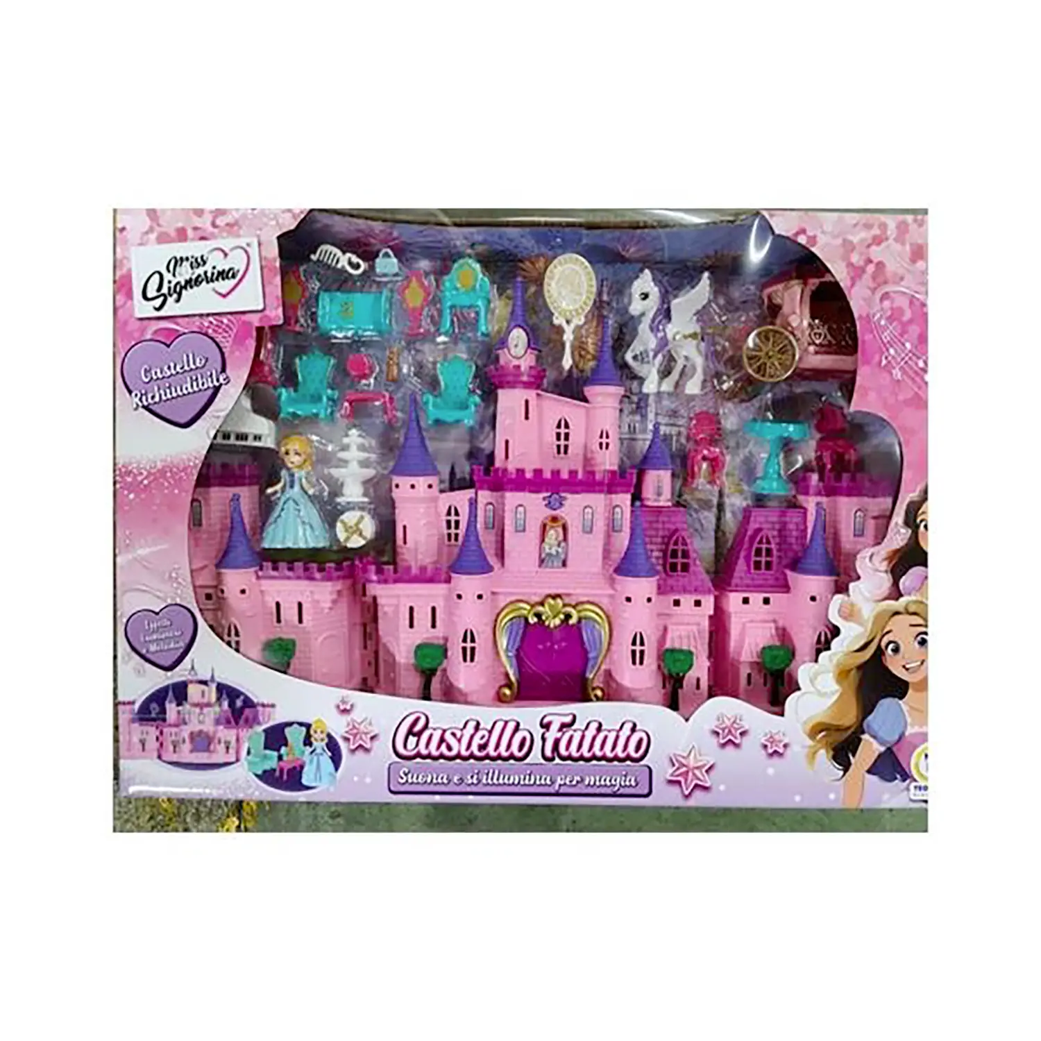 Miss Signorina – Castello delle Favole Un castello incantato che prende vita come per magia! Con luci e suoni integrati, trasporta i bambini nel mondo delle fiabe, regalando un’esperienza di gioco unica e suggestiva.
