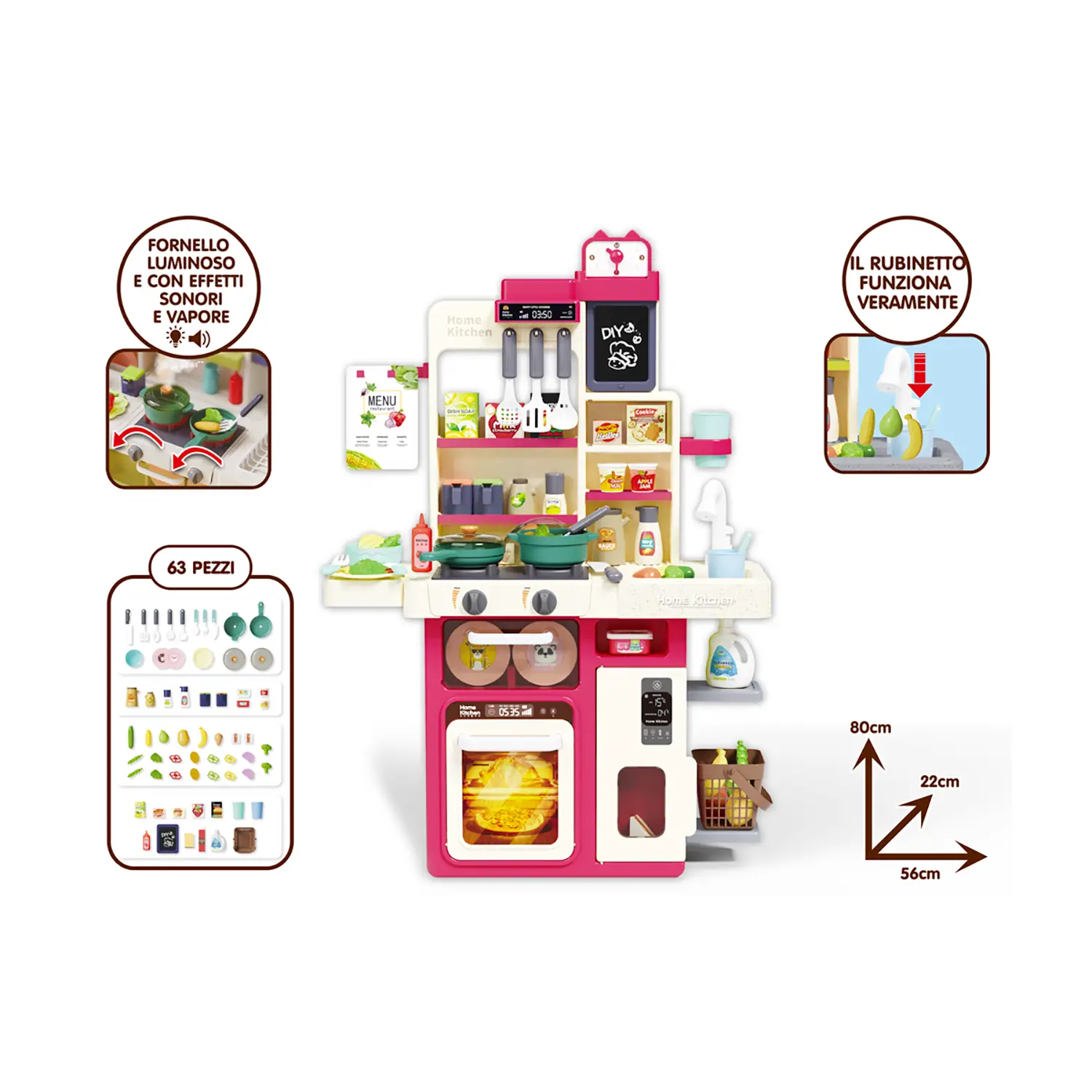 Cucina Grande Chef Con Accessori Funzioni Reali Altezza 80cm Luci, Suoni e Vapore 63 Pz