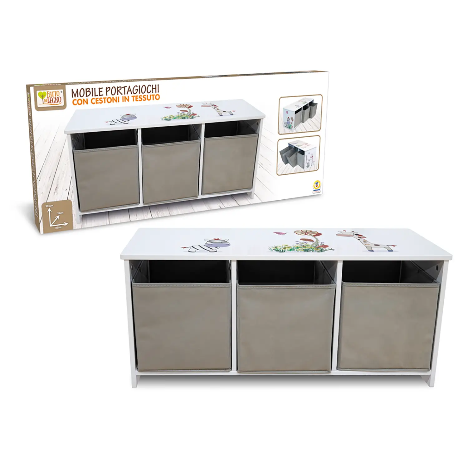 Fatto Di Legno - Mobile Portagiochi con Cestoni in Tessuto