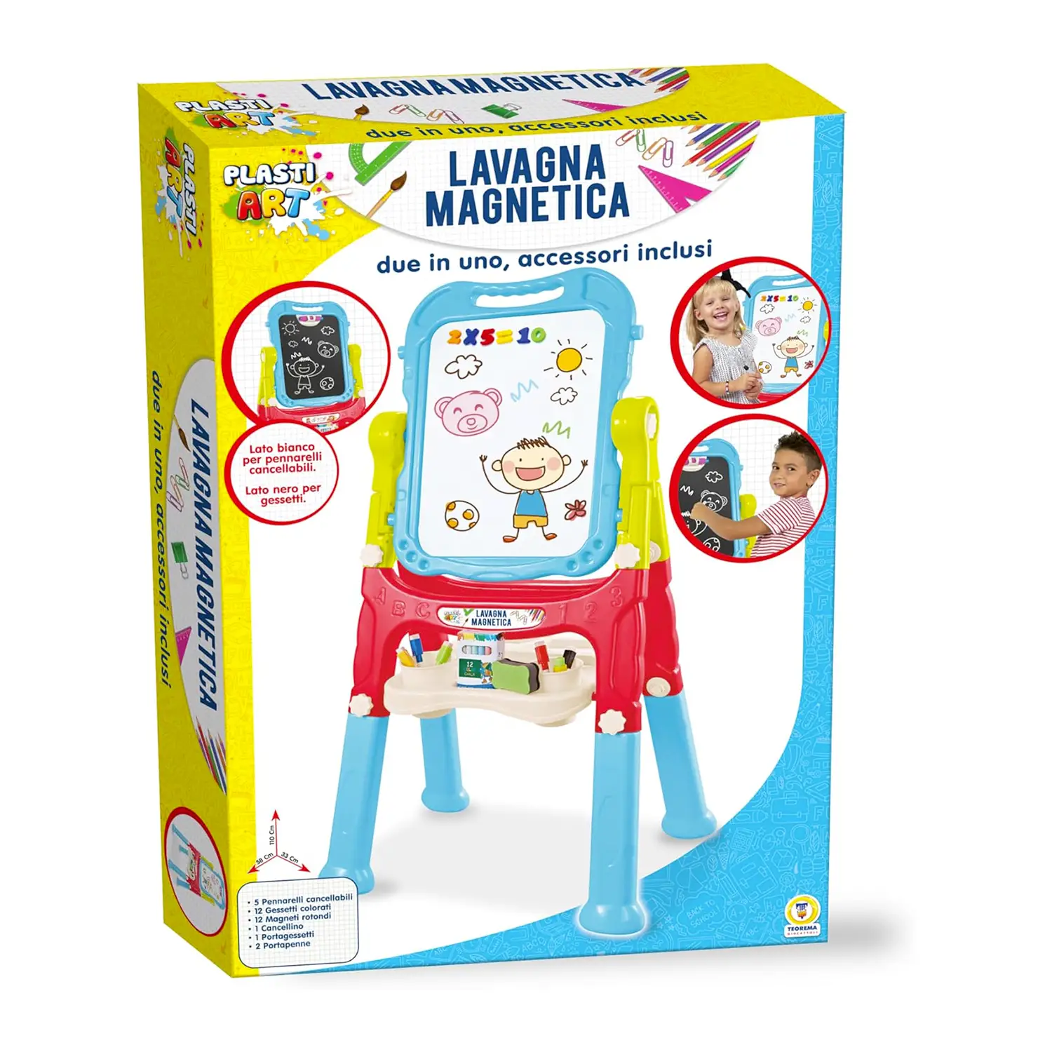- ✅ Lavagna doppia: lato bianco magnetico per pennarelli e lato nero per gessetti, ideale per ogni artista.