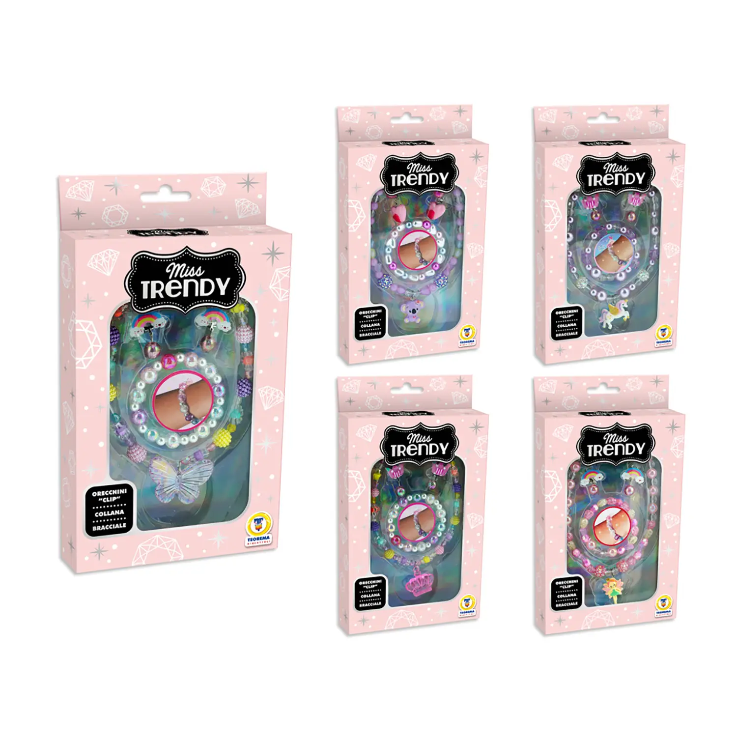 Stile e Variazione Scopri la collezione di gioielli “Miss Signorina”, perfetta per ogni giovane fashionista. Con 5 modelli assortiti, ogni set offre un look unico e alla moda, inclusi orecchini, collane e braccialetti.