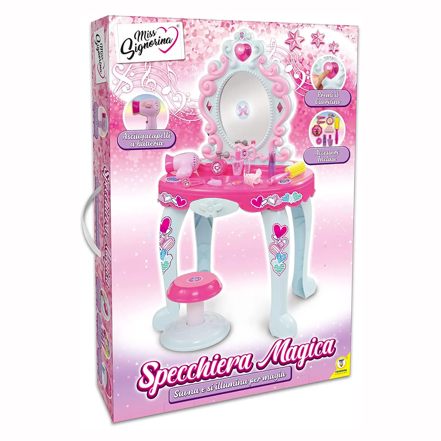 Specchiera interattiva per bambine: - Miss Signorina è una specchiera giocattolo alta 77 cm con luci, suoni e accessori beauty per imitare mamma nel suo angolo trucco.