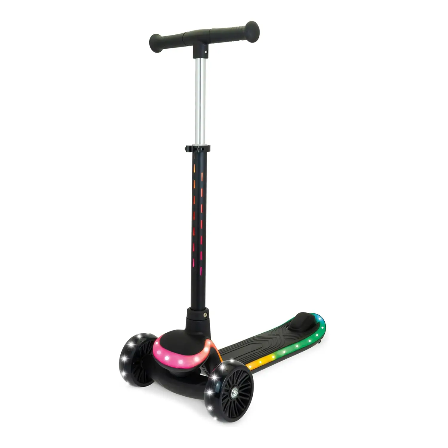 Dotato di due ruote anteriori da 120 mm e una ruota posteriore da 80 mm, questo monopattino assicura un’ottima stabilità e facilità di manovra, perfetto per i bambini che stanno imparando a bilanciarsi e a coordinarsi. Il design a tre ruote favorisce la sicurezza senza sacrificare il divertimento, permettendo ai piccoli di esplorare con fiducia.