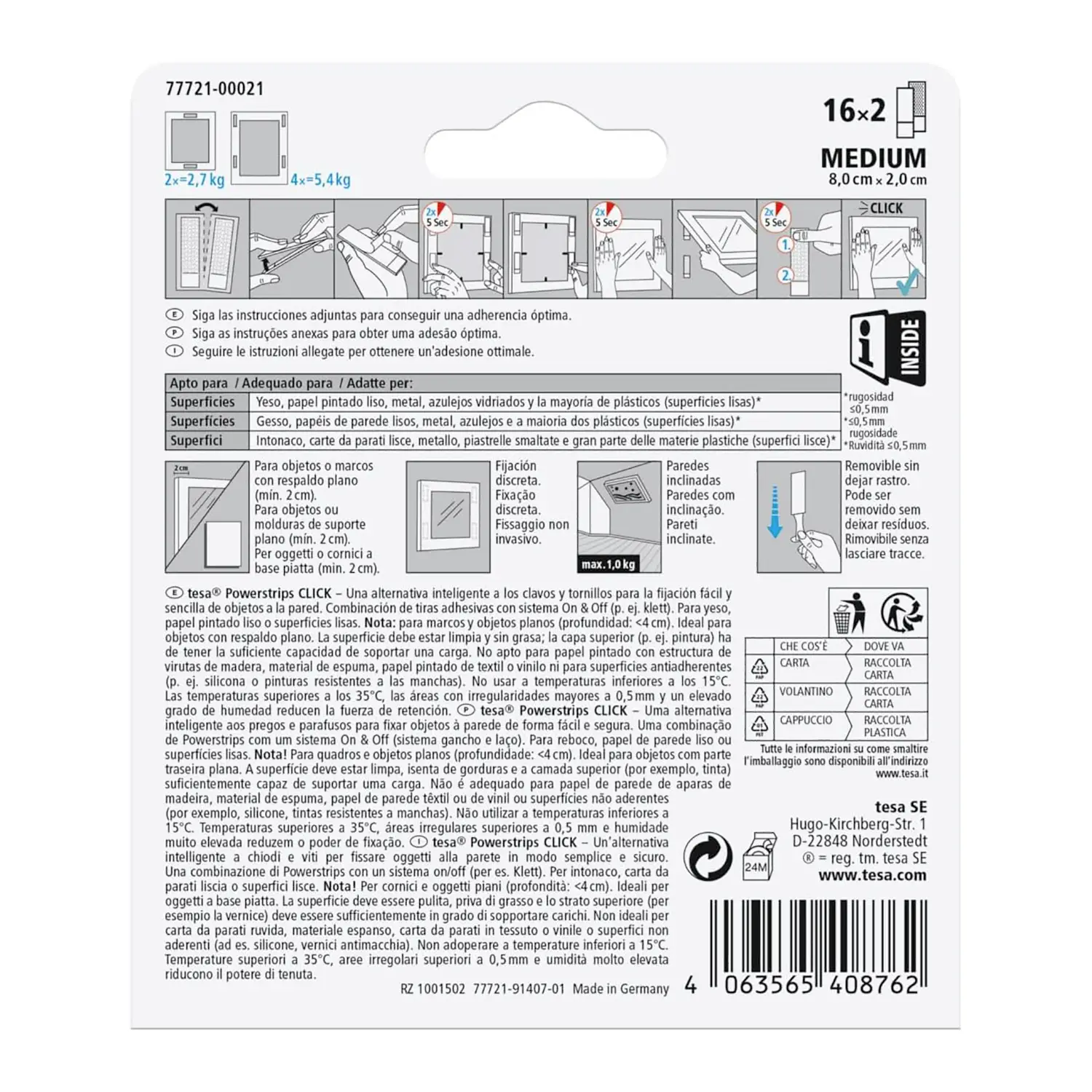 Powerstrips Click Medium - Strisce Autoadesive con Sistema di Aggancio e Sgancio 16x2 Pezzi