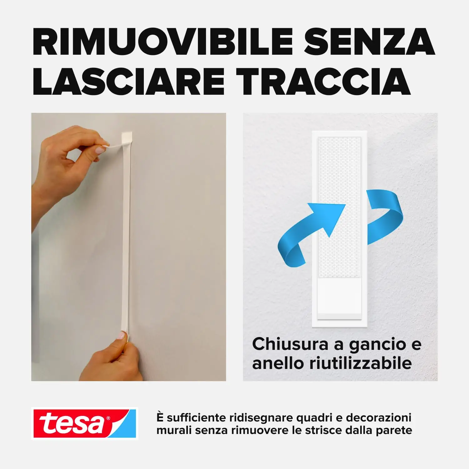 Design invisibile: Una volta applicate, le strisce adesive restano completamente nascoste dietro la cornice o l’oggetto decorativo, offrendo un effetto estetico ordinato e professionale in ogni ambiente domestico o ufficio.
