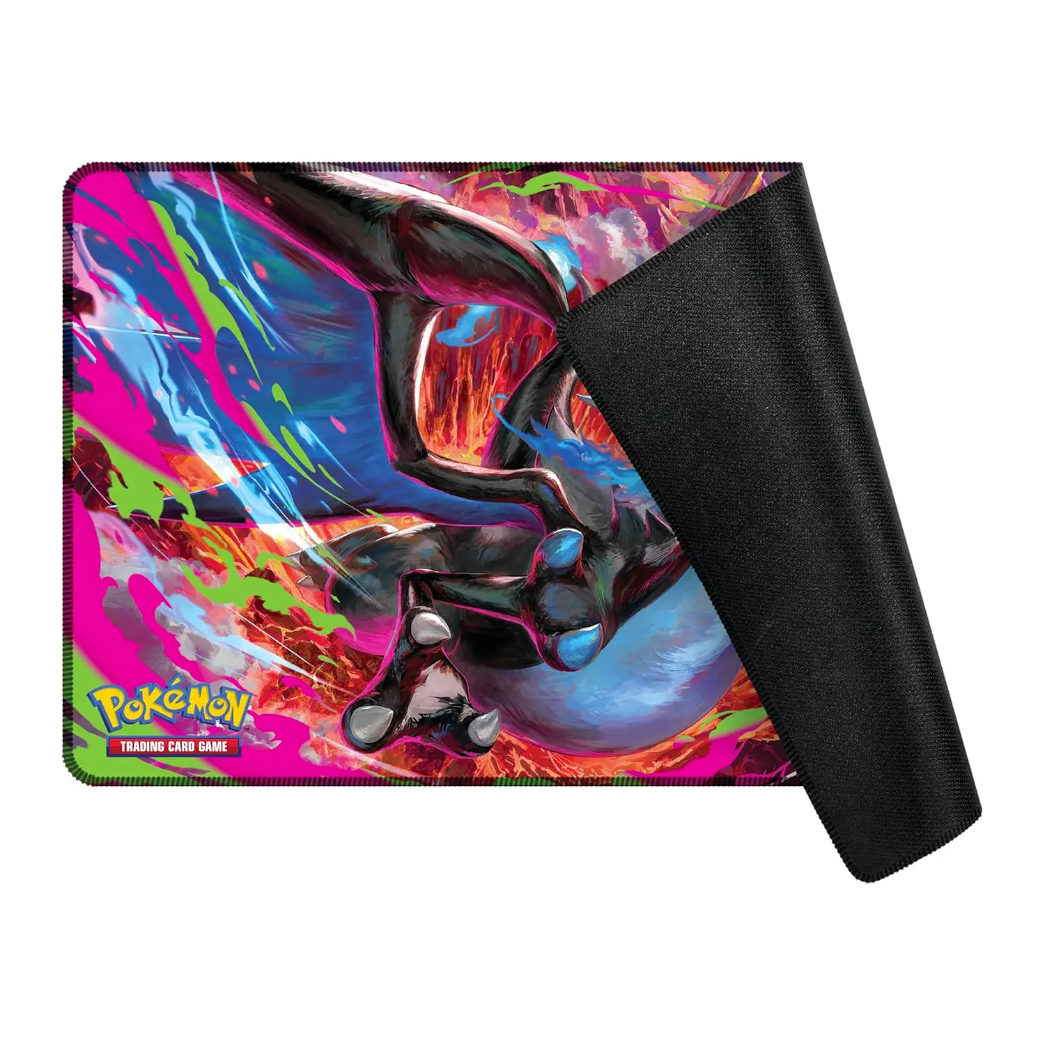 Accessori Premium da Collezione: Il set comprende 65 bustine protettive, un tabellone di gioco, un portamazzo, una moneta e sei dadi segnalini danno, tutti decorati con l’iconico Mega Charizard X. Inclusa anche una carta codice per Pokémon Live.