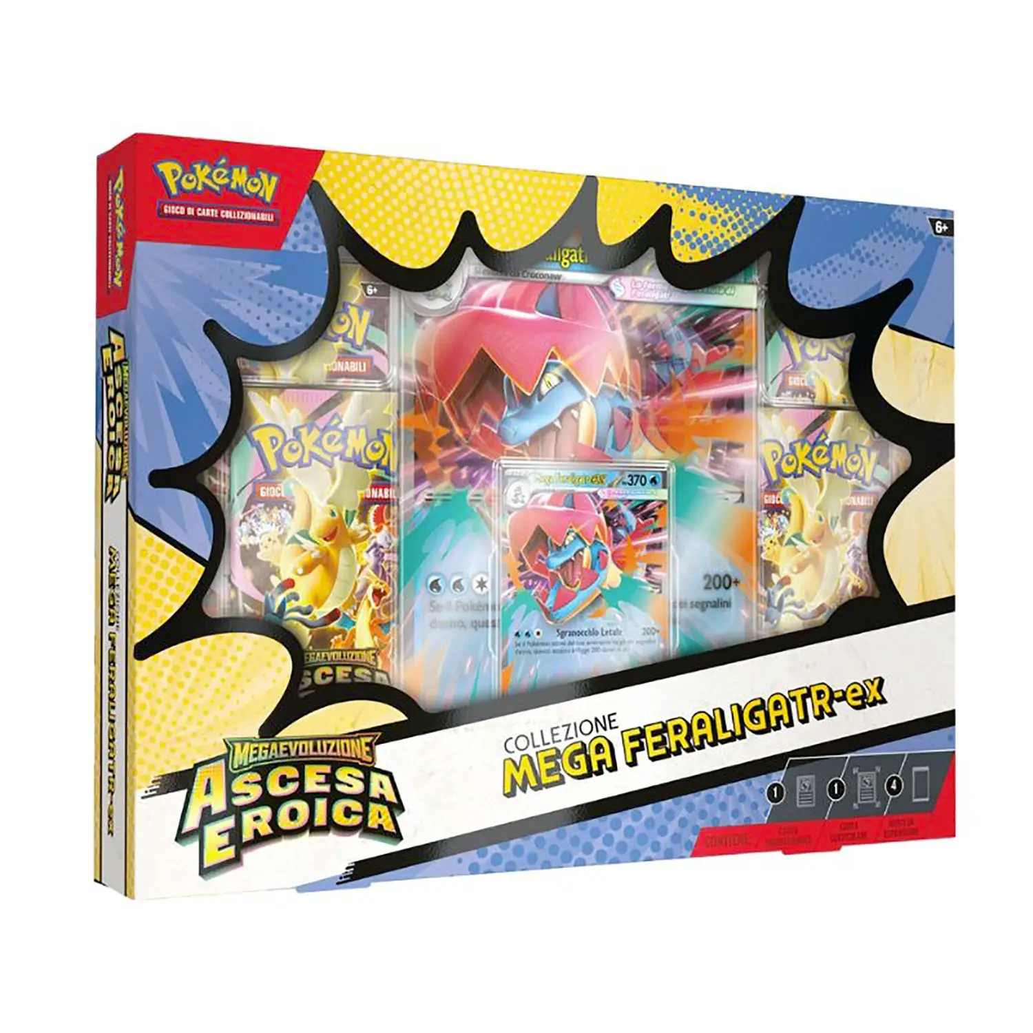 - ✅ Collezione Pokémon Megaevoluzione Ascesa Eroica con Mega-EX protagonista.