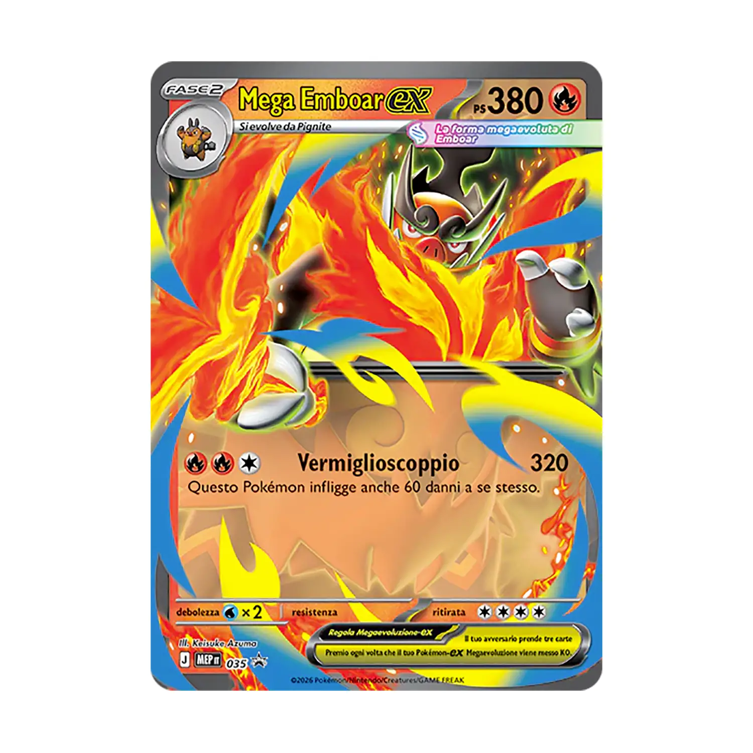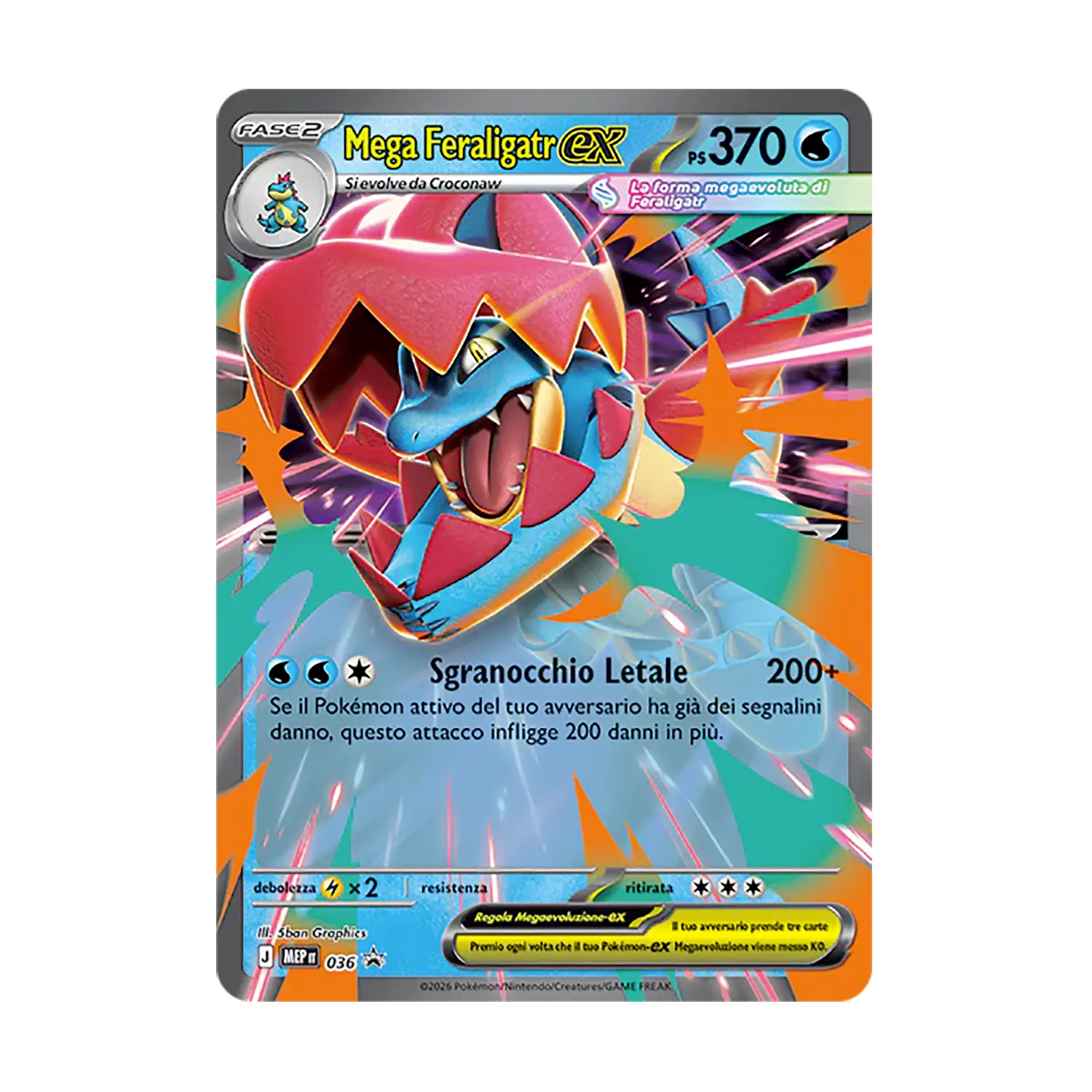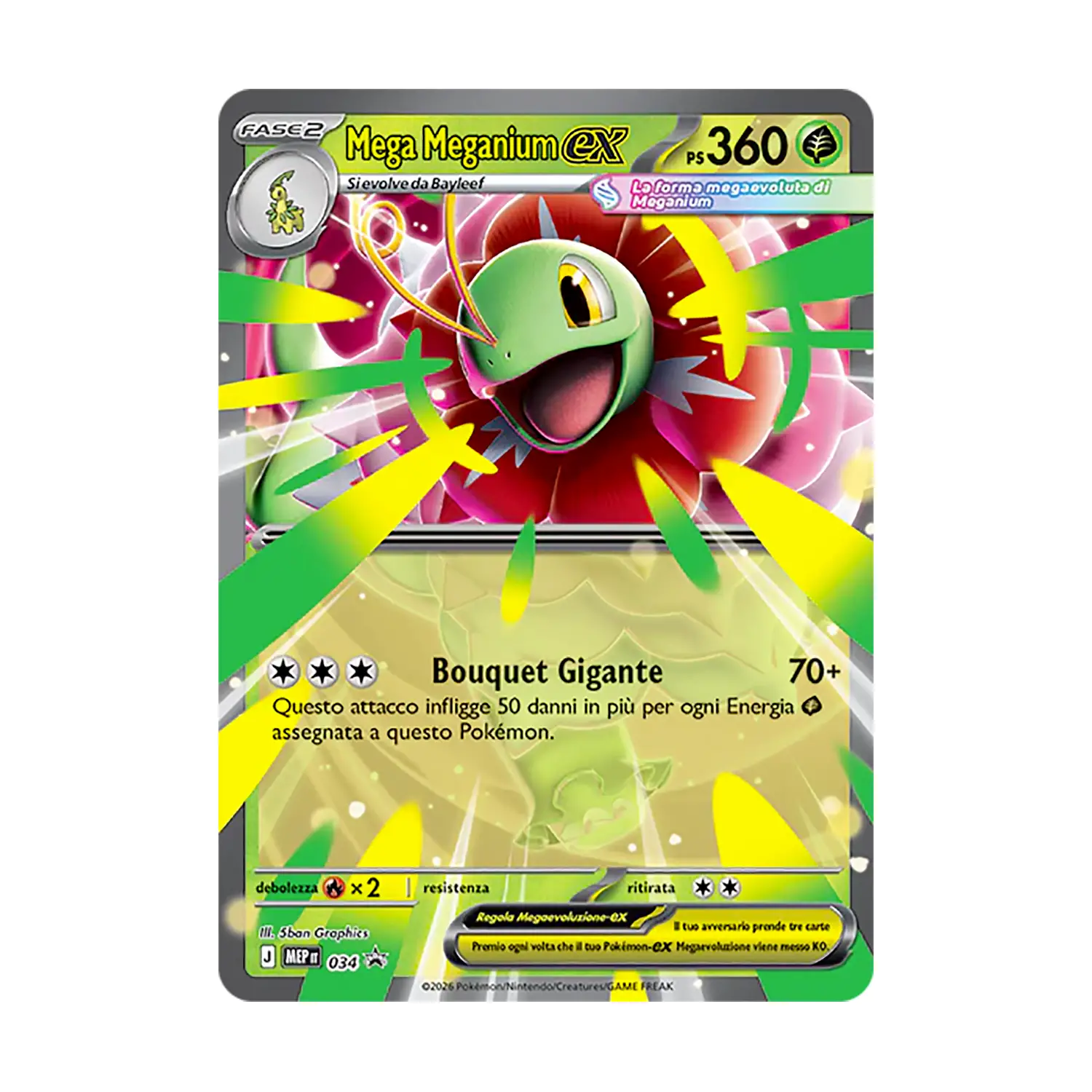 - ✅ Disponibile con Mega Emboar-EX, Mega Feraligatr-EX o Mega Meganium-EX.