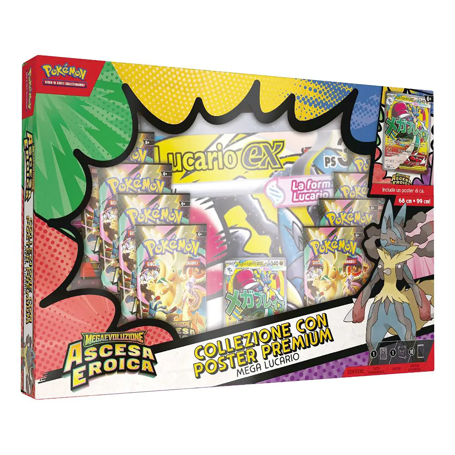 - ✅ Collezione Pokémon Ascesa Eroica con carta promo Mega Gardevoir-ex o Mega Lucario-ex assortita.