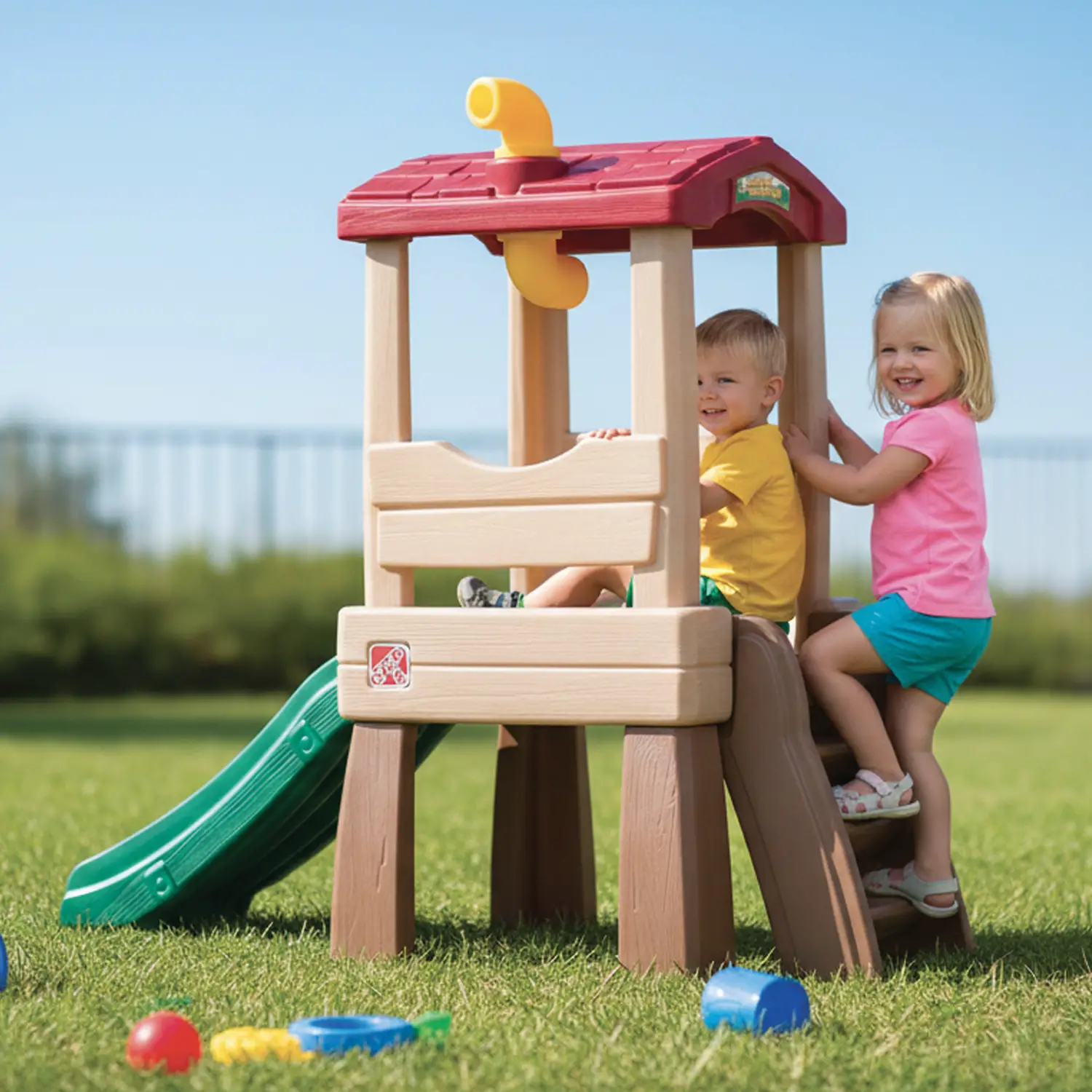 La Torretta Avvistamento Step2 con Scivolo è la soluzione ideale per creare uno spazio gioco sicuro e stimolante, dove i bambini possono arrampicarsi, osservare e scivolare, vivendo avventure creative e divertenti all’aria aperta.