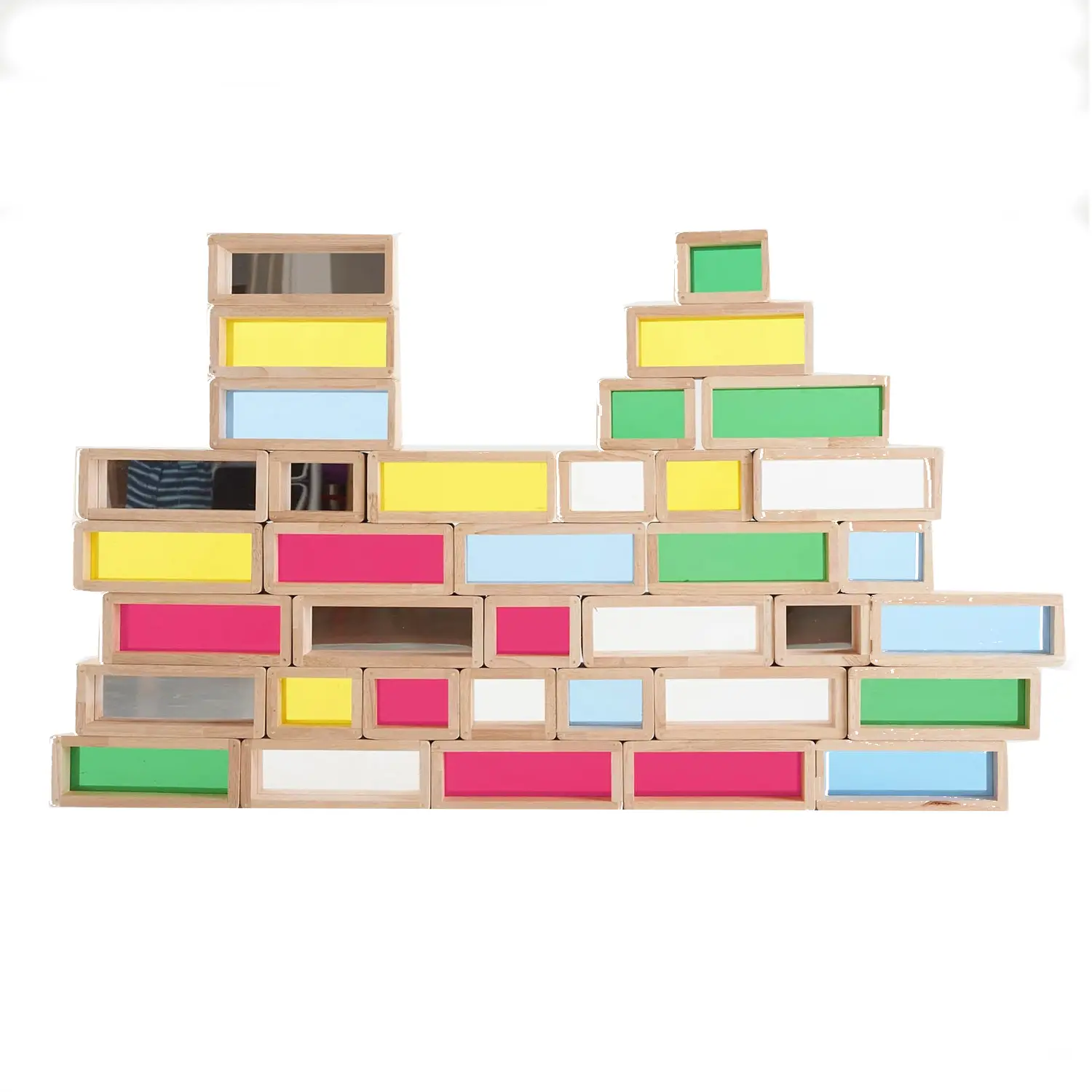 - Blocchi giganti in legno levigato con inserti in acrilico trasparente colorato