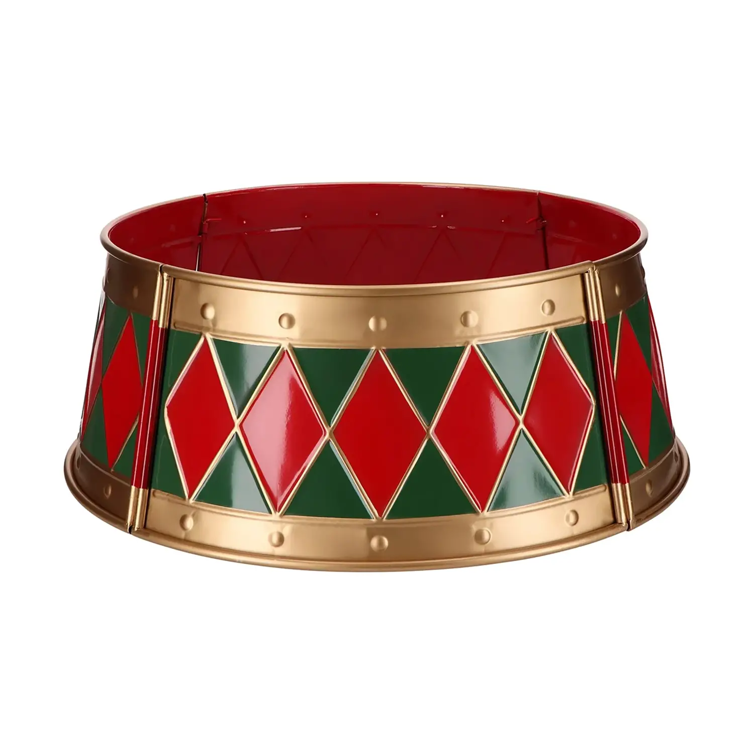 - ✅ Tree skirt natalizio in metallo smaltato con motivi a rombi rossi, verdi e oro