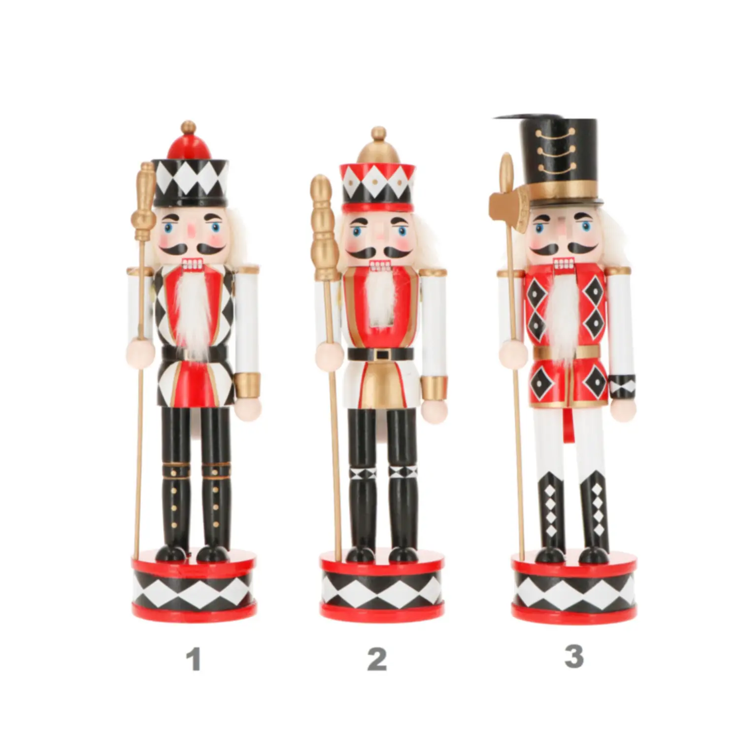 Porta in casa la magia delle feste con questi splendidi Schiaccianoci da 30 cm in legno, decorazioni iconiche che aggiungono un tocco di tradizione, eleganza e colore alle tue festività natalizie.