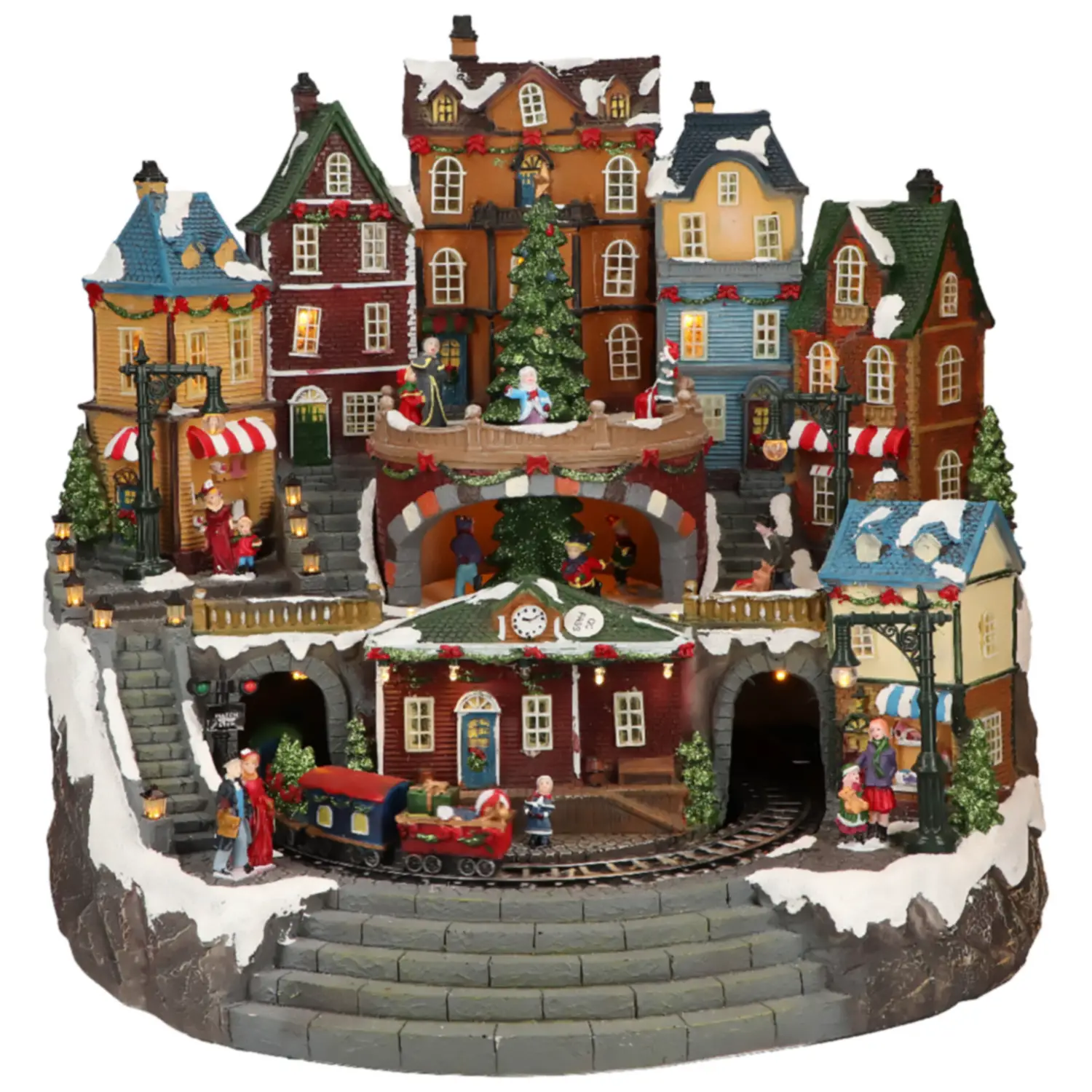 Villaggio Città con Treno Movimento Musiche e Luci Led Adattatore Incluso